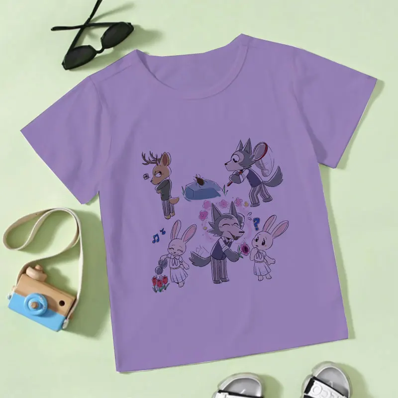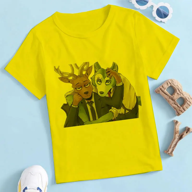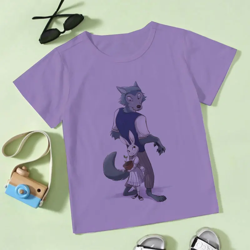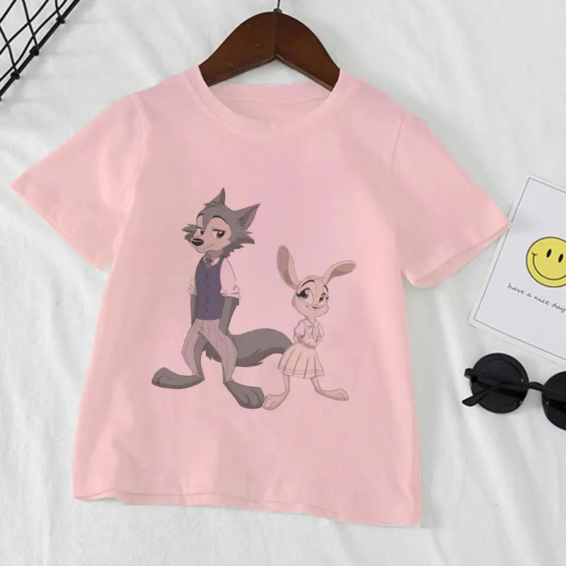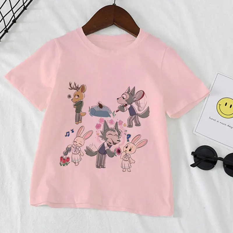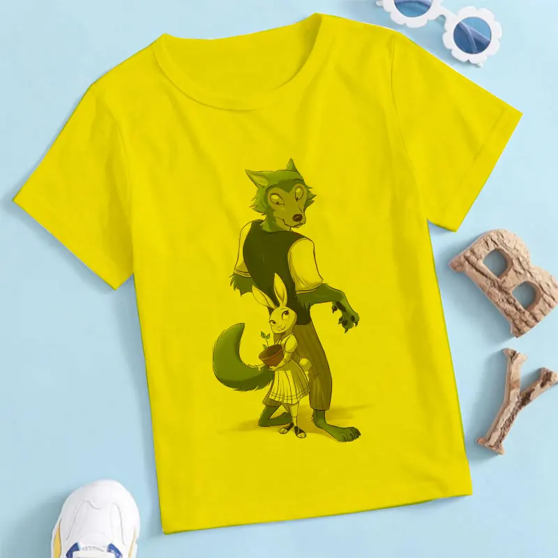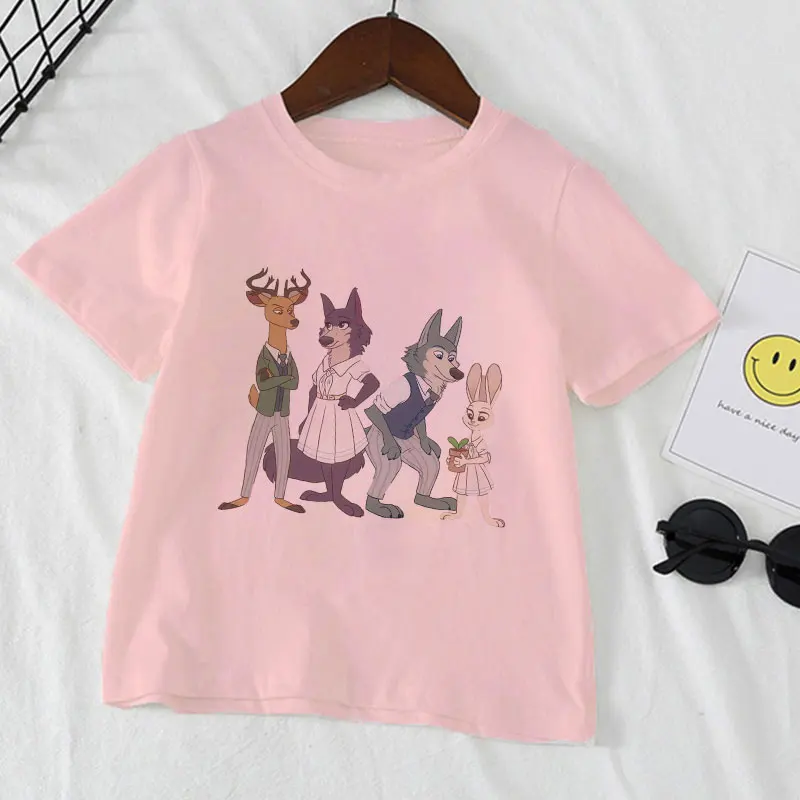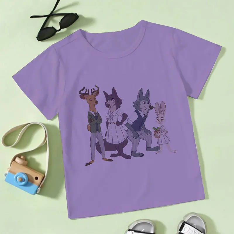 2021, летние, модные, повседневные, из мультфильма, популярная яркая детская одежда с рисунком персонажей аниме животных Рапсодия BEASTARS для детей, для девочек и мальчиков, белая футболка От 2 до 9 лет
