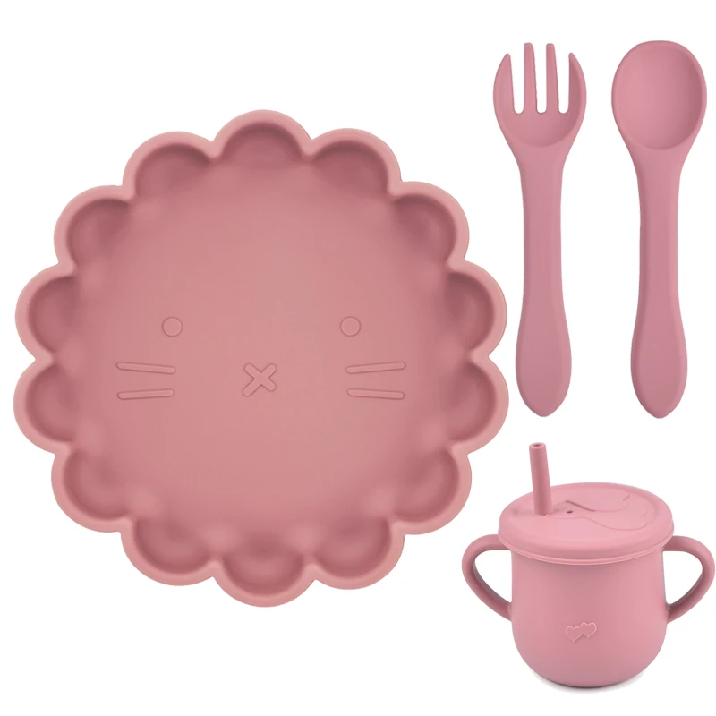 Силиконовая тарелка с ложкой и львом, 9 цветов