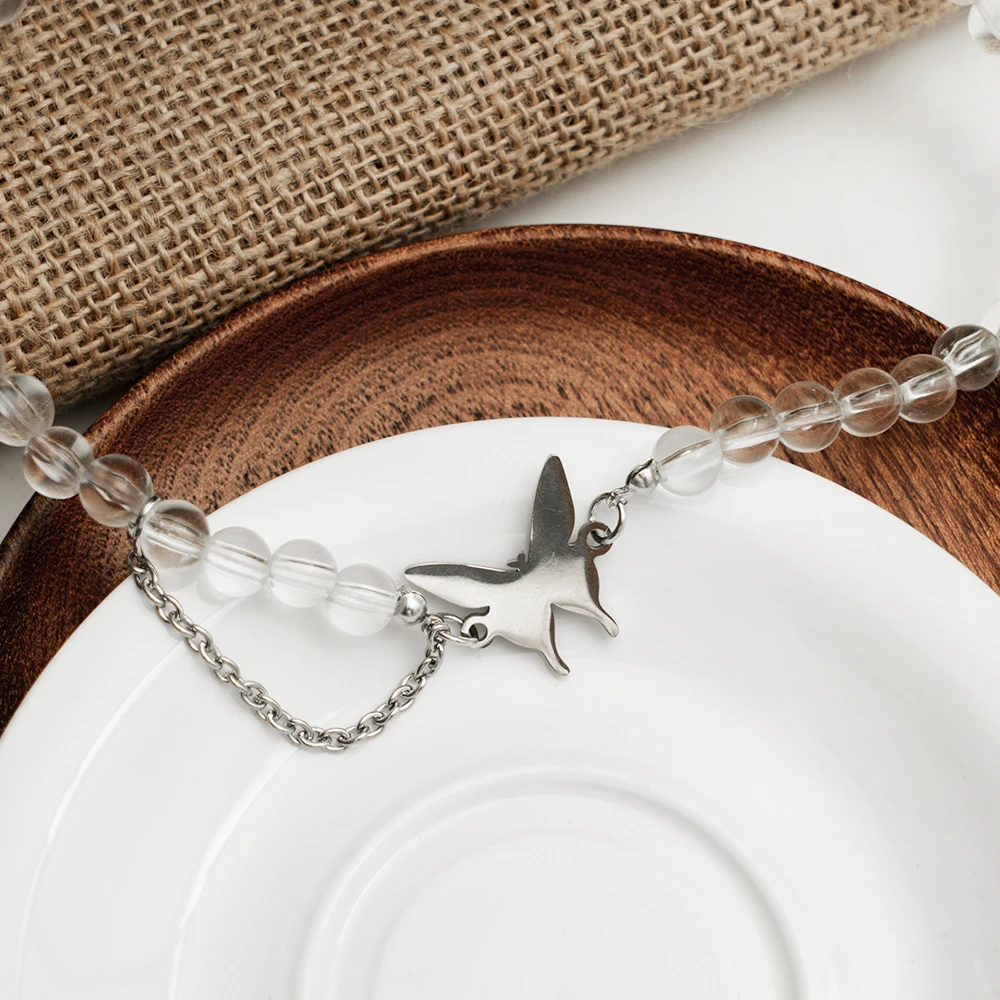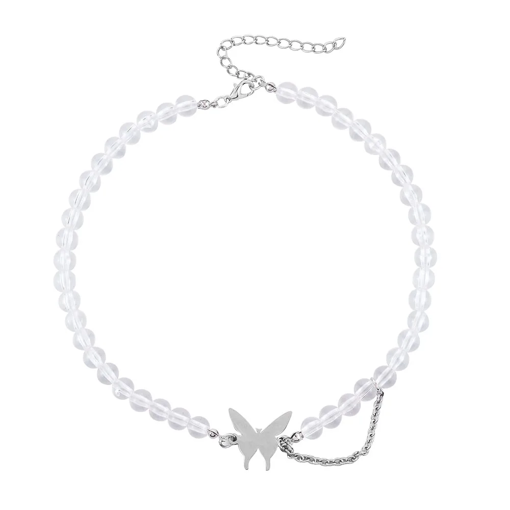 Ожерелье с подвеской в виде бабочки Стразы, Винтажные бусины, цепочка из нержавеющей стали для женщин, блестящая цепочка, чокер с кристаллами, ожерелье, ювелирные изделия