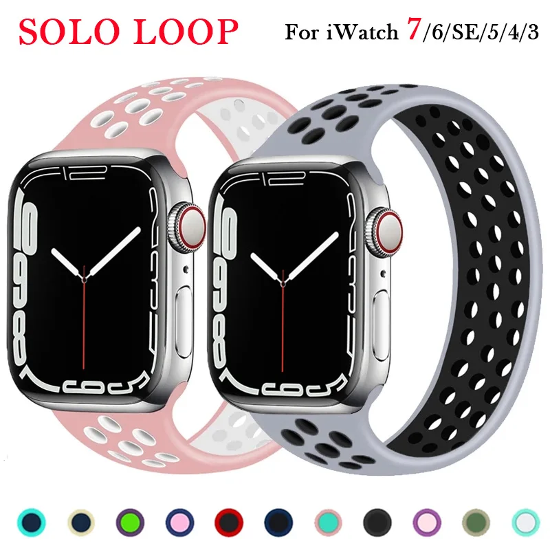 Ремешок Solo Loop для Apple Watch Band 45 мм 44 мм 42 мм 38 мм 40 мм 41 мм, Силиконовый эластичный браслет для iWatch 3 4 5 SE 6 SE 7