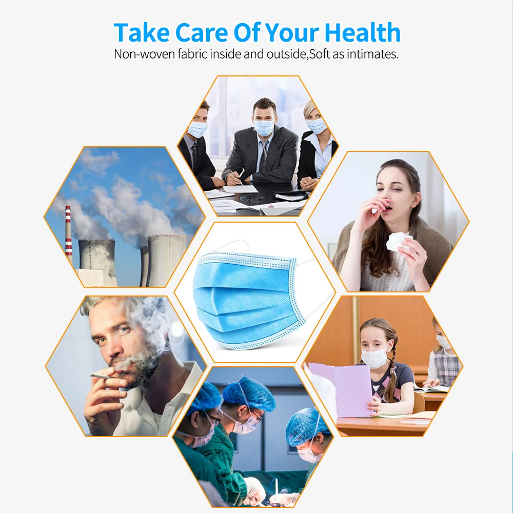 Одноразовая маска гражданского 3-х слойные ежедневная маскаПараметры продукта:Материал: трехслойный нетканый материалПодходящий сезон: Весна, Осень, Зима, ЛетоЦвет: синий, белый, серый, черный, розовый, фиолетовый, зеленый, желтый, оранжевый, красныйСтиль маски: тип ушной петлиРазмеры: около 17*9,5 смОсобенности продукта:1. Новая ткань PP Нетканая ткань, мягкая и чистая, удобная и дышащая2. Процесс бесшовной вязки3. Три раза дизайн, больше дышащего пространства на лице4. Пластиковая полоска для носа, алюминиево-пластиковая полоска для носа,5. Многослойная защита для вашего дыхательного здоровьяКак носить маску:1. Закройте рот и нос и Повесьте два боковых ремня на уши2. Фиксация моста носа в соответствии с формой носа предотвращает загрязнения воздуха от входа.3. Пожалуйста, потяните маску к нижней челюсти, чтобы немедленно предоставить трехмерное дышащее пространство.Пожалуйста, обратите внимание, что указанный Товар производится и распространяется за рубежом и в соответствии с законодательством страны его происхождения