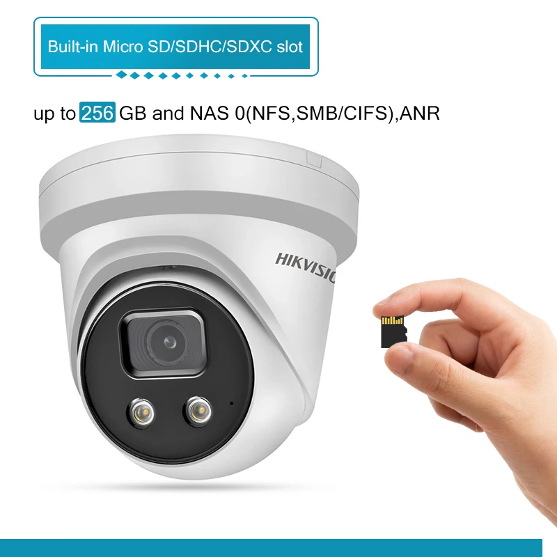 Сетевое хранилище: MicroSD/SDHC/SDXC карта (256 ГБ) локальное хранилище, NAS (NFS, SMB/CIFS), автоматическое пополнение сети (ANR)