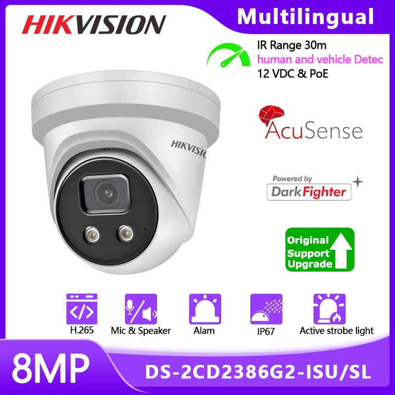Hikvision AcuSens DS-2CD2386G2-ISUSL IP-камера с активным стробоскопом 8MP WDR двухстороннее аудио POE цветная веб-камера ночного видения