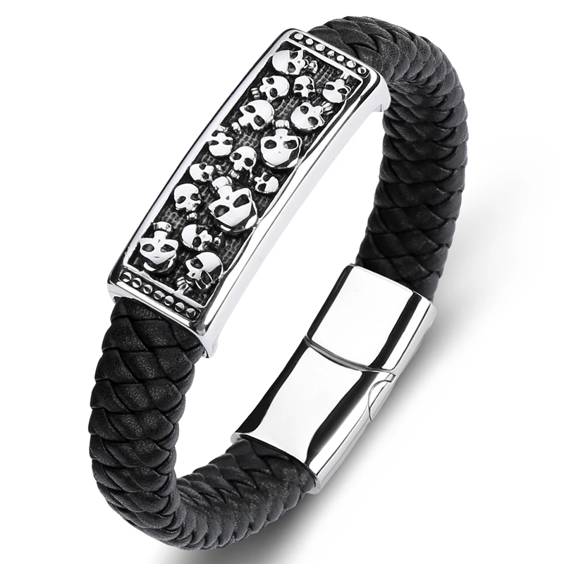 Многоцветный плетеный кожаный браслет, мужские ювелирные изделия в стиле панк-рок, кожаные браслеты из нержавеющей стали с черепом, мужской модный браслет для мальчиков P105