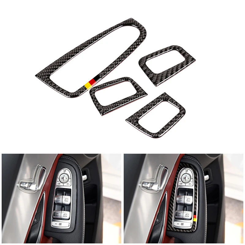 4 шт. Стайлинг автомобиля Настоящее углеродное волокно окно переключатель подлокотник панель Крышка отделка для Mercedes Benz C Class W205 C180 C200 C300 GLC260