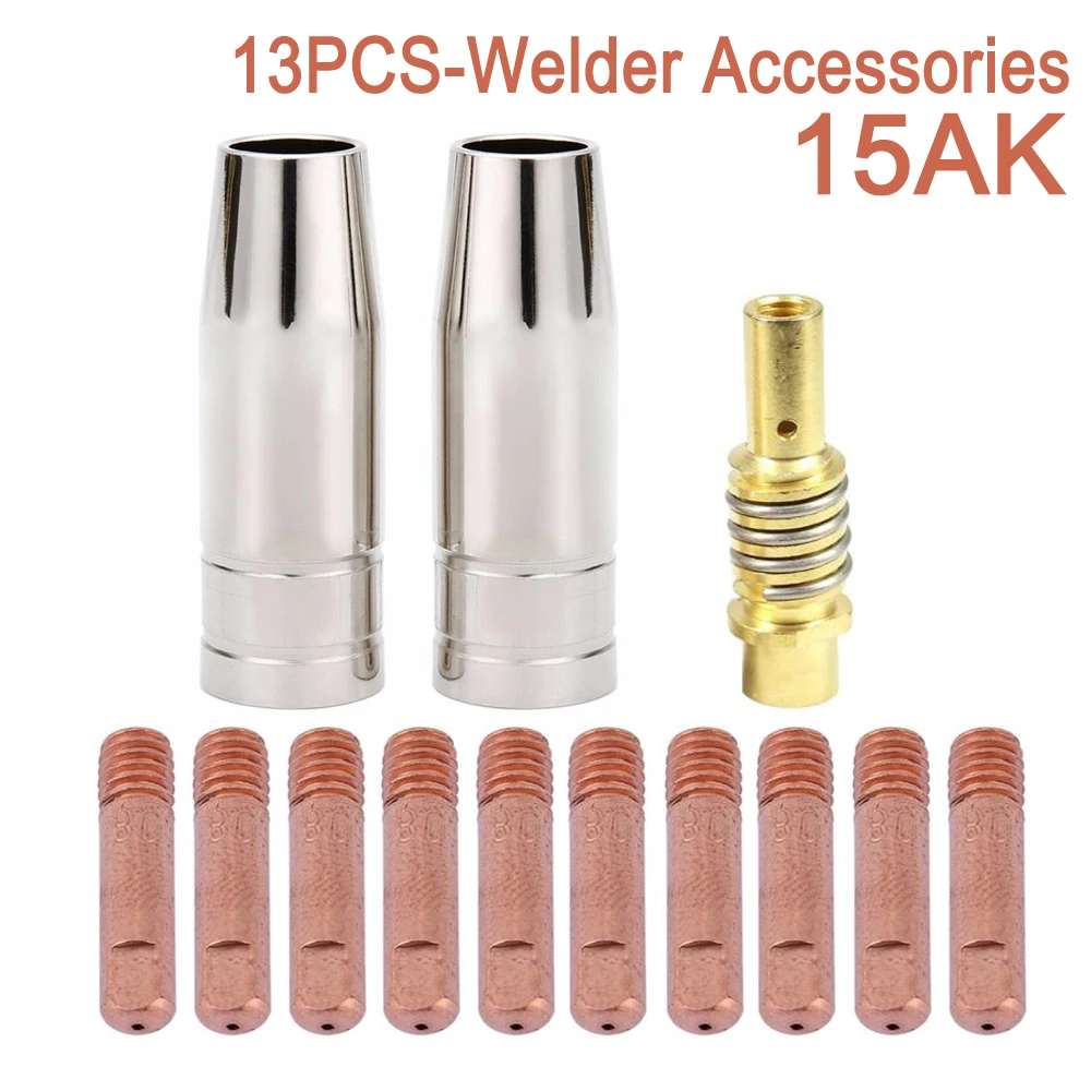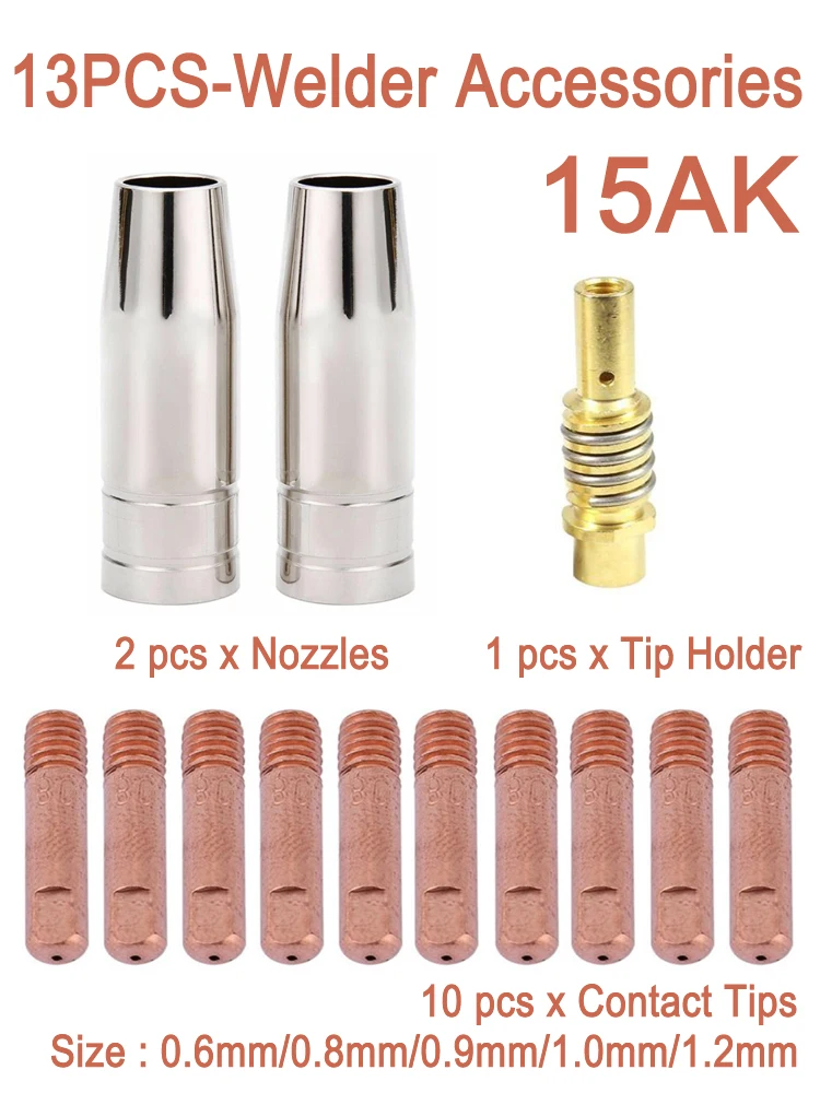 13 шт., расходные материалы для сварочных горелок 15AK, 0,6 мм, 0,8 мм, 0,9 мм, 1,0 мм, 1,2 мм, сварочные наконечники, газовые сопла, диффузор для сварочных горелок в европейском стиле 15AK