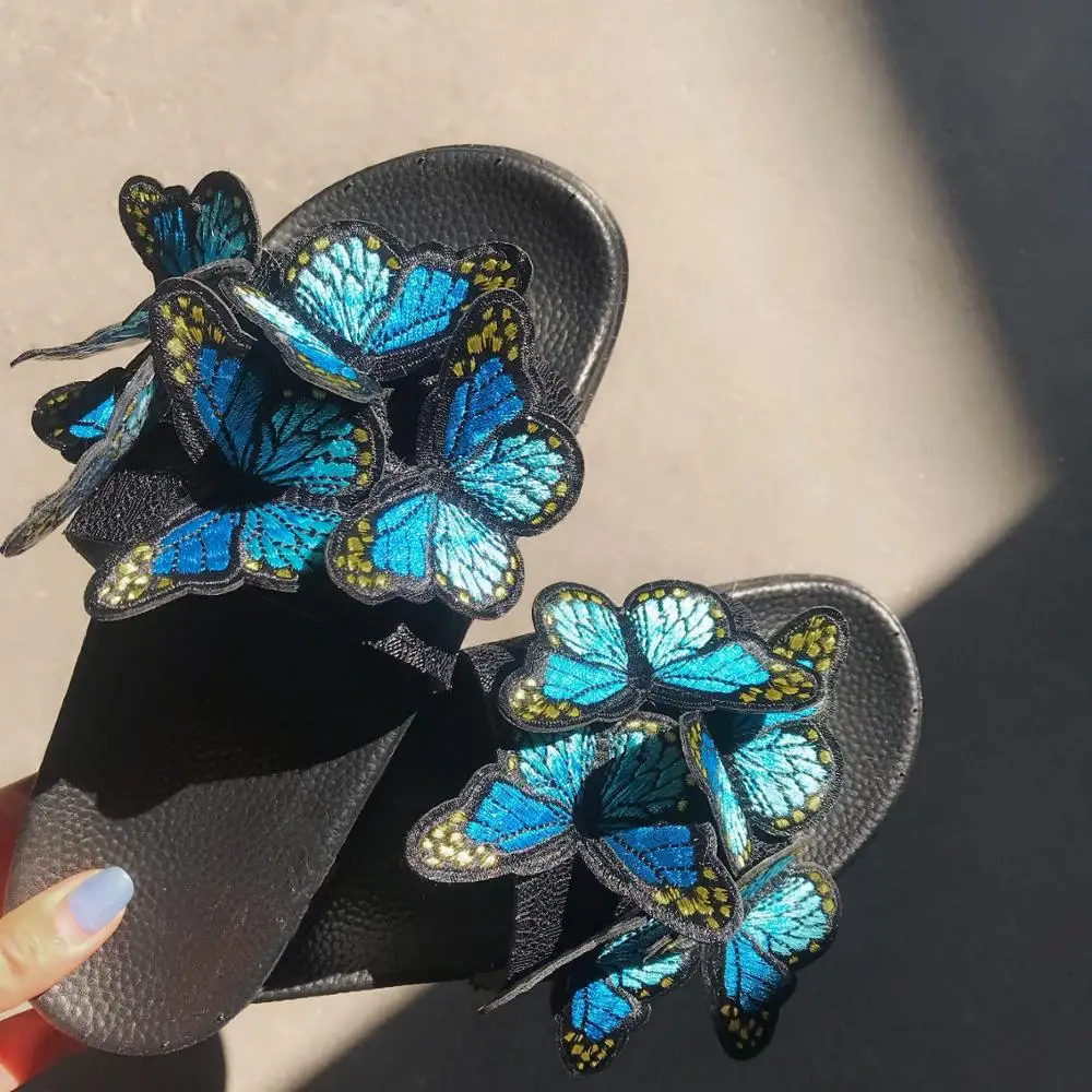Женские летние тапочки с бабочкой, сандалии с вышивкой и бантом, же...