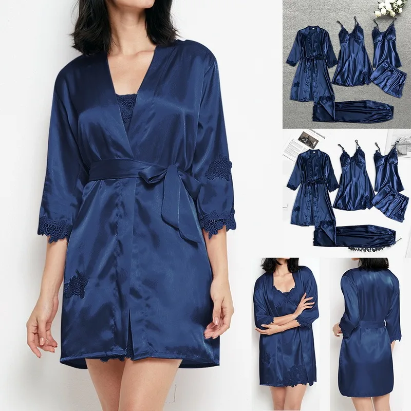 4-5 шт. шелковый халат, костюм для сна, женский кружевной Атласный ...
