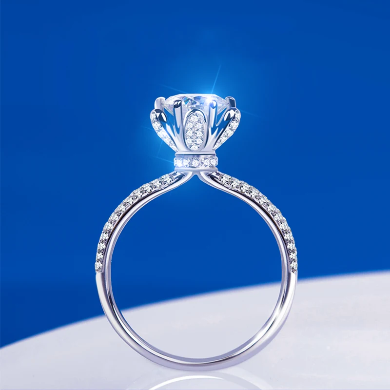 Для Женщин Цветок обручальное кольцо 100% 925 стерлингового серебра 1ct 2ct D Цвет VVS1 Муассанит в виде королевской короны из ювелирные изделия для женщин, ювелирные изделия