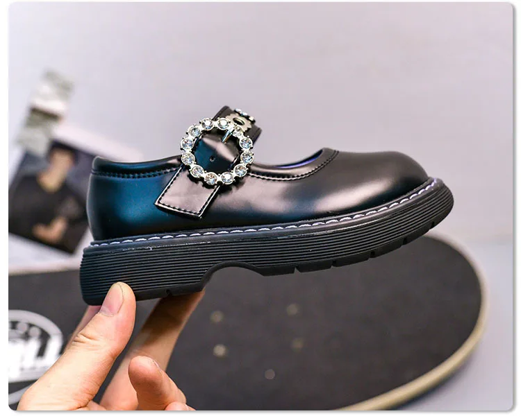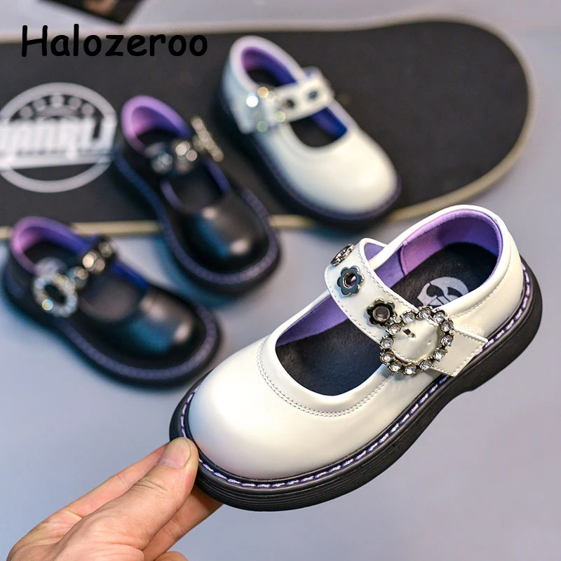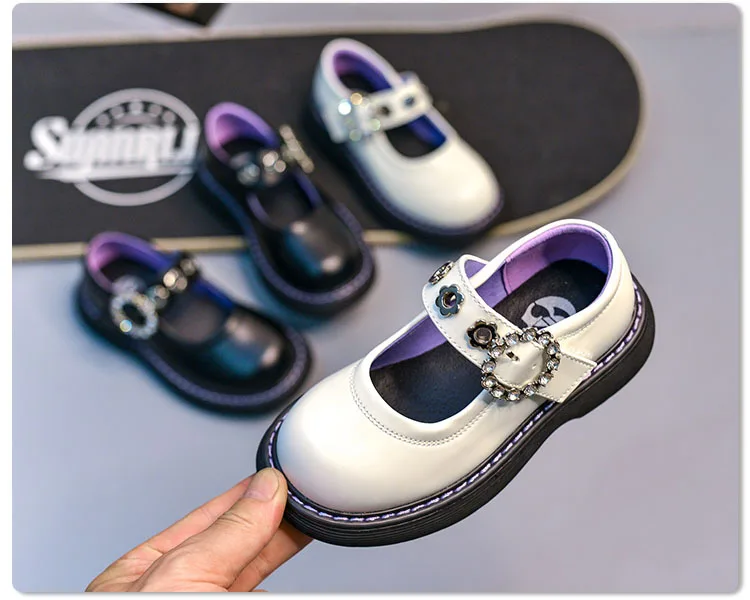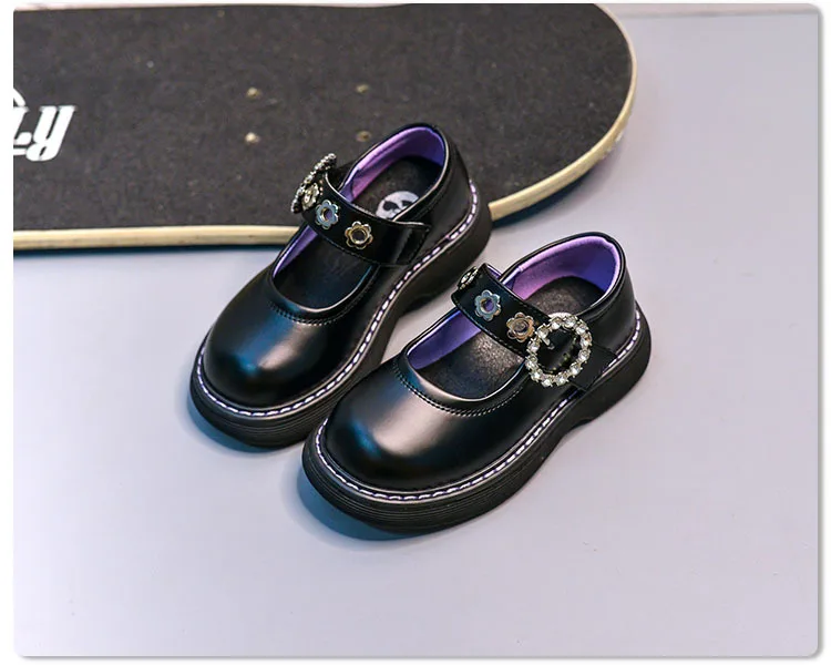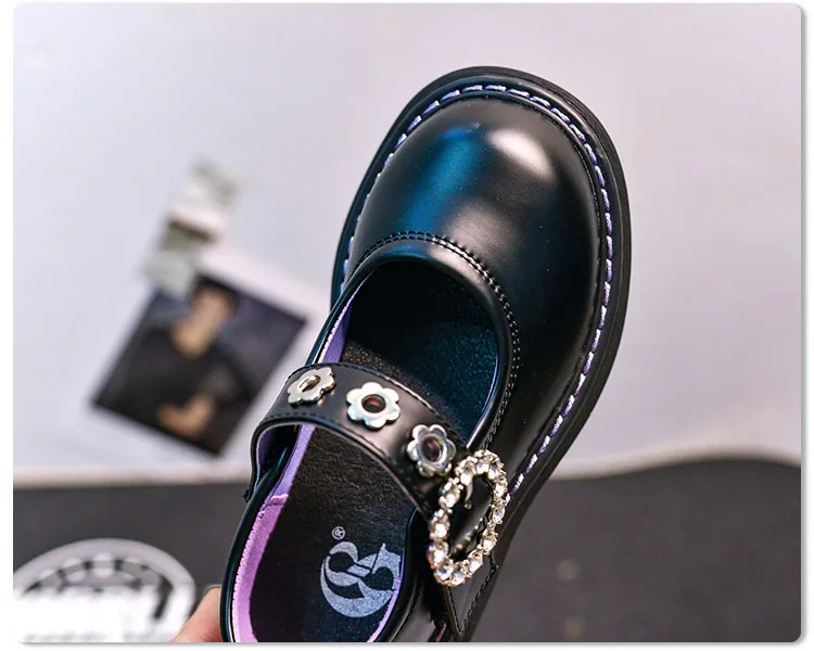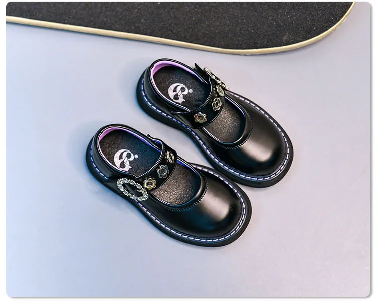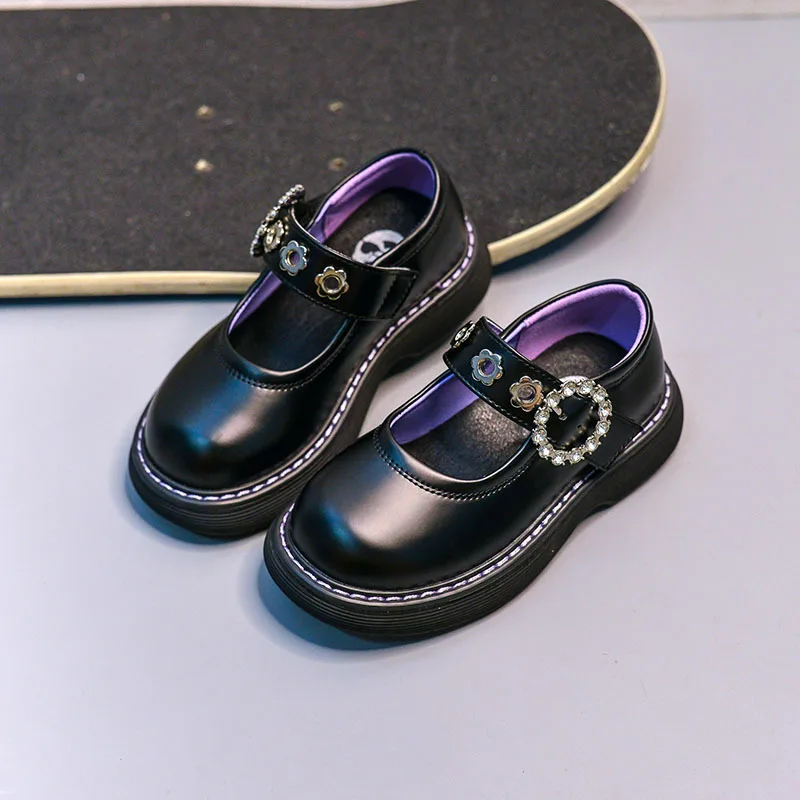 Новинка, Осенняя детская обувь принцессы с цветами, брендовая Классическая обувь для маленьких девочек, детские черные туфли со стразами, мягкая кожаная обувь на плоской подошве, Мэри Джейн