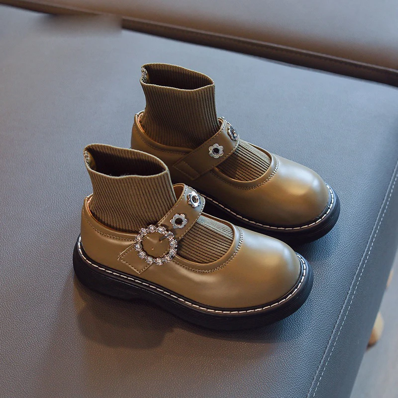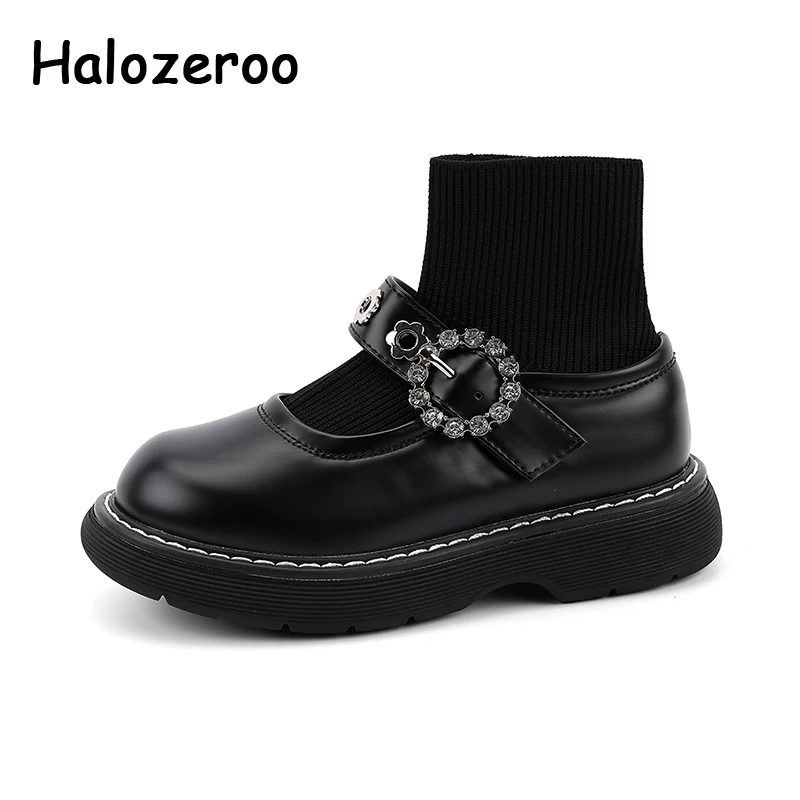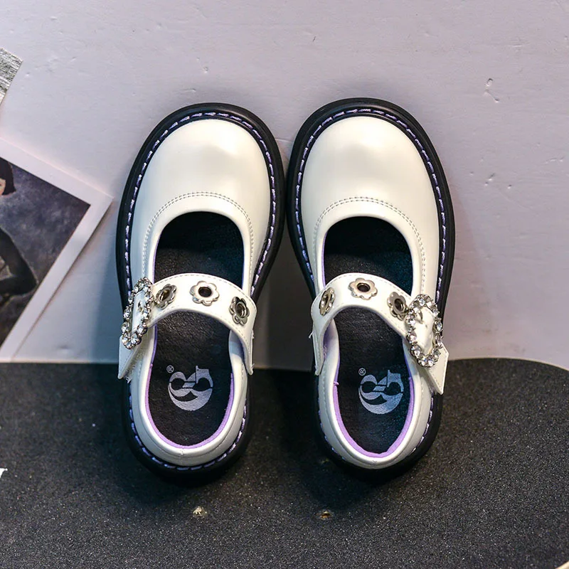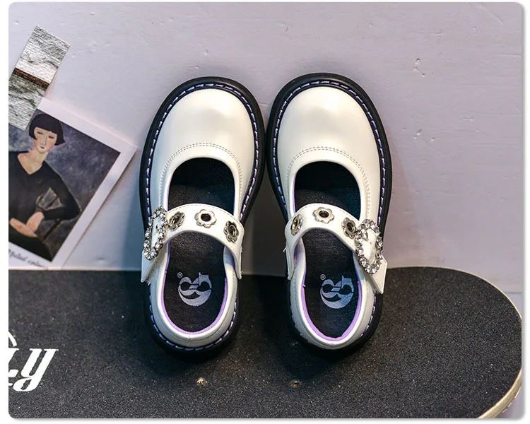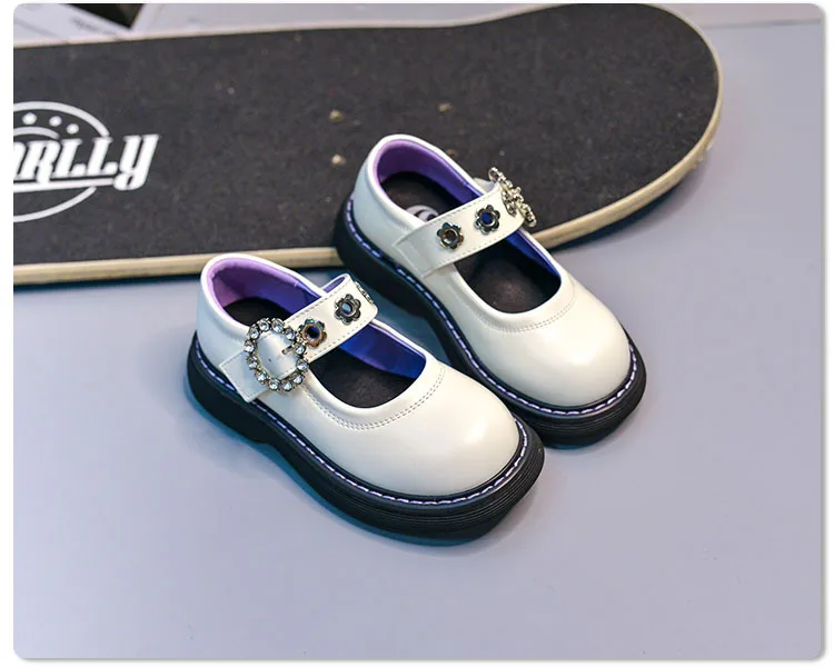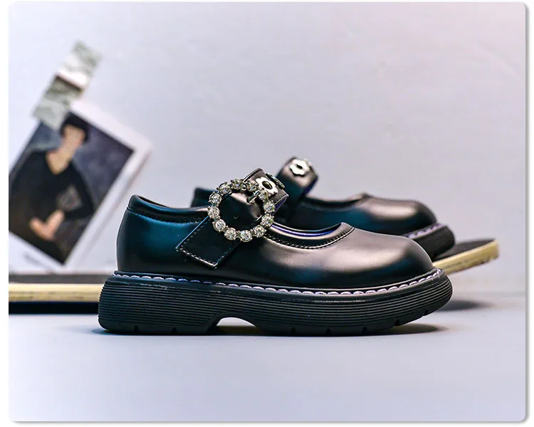 Новинка, Осенняя детская обувь принцессы с цветами, брендовая Классическая обувь для маленьких девочек, детские черные туфли со стразами, мягкая кожаная обувь на плоской подошве, Мэри Джейн
