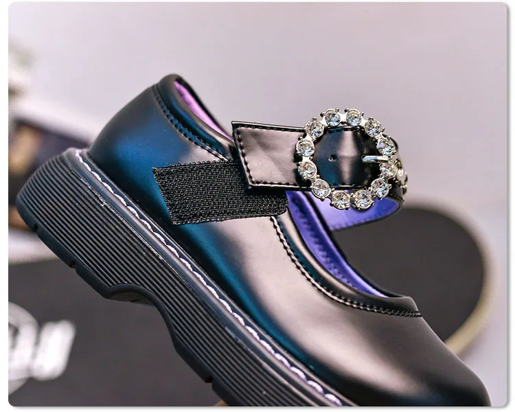 Новинка; Сезон осень; Детская обувь принцессы с цветочным рисунком; Брендовые модельные туфли для маленьких девочек; Детская обувь черного цвета со стразами; Туфли Mary Jane из мягкой кожи на плоской подошве