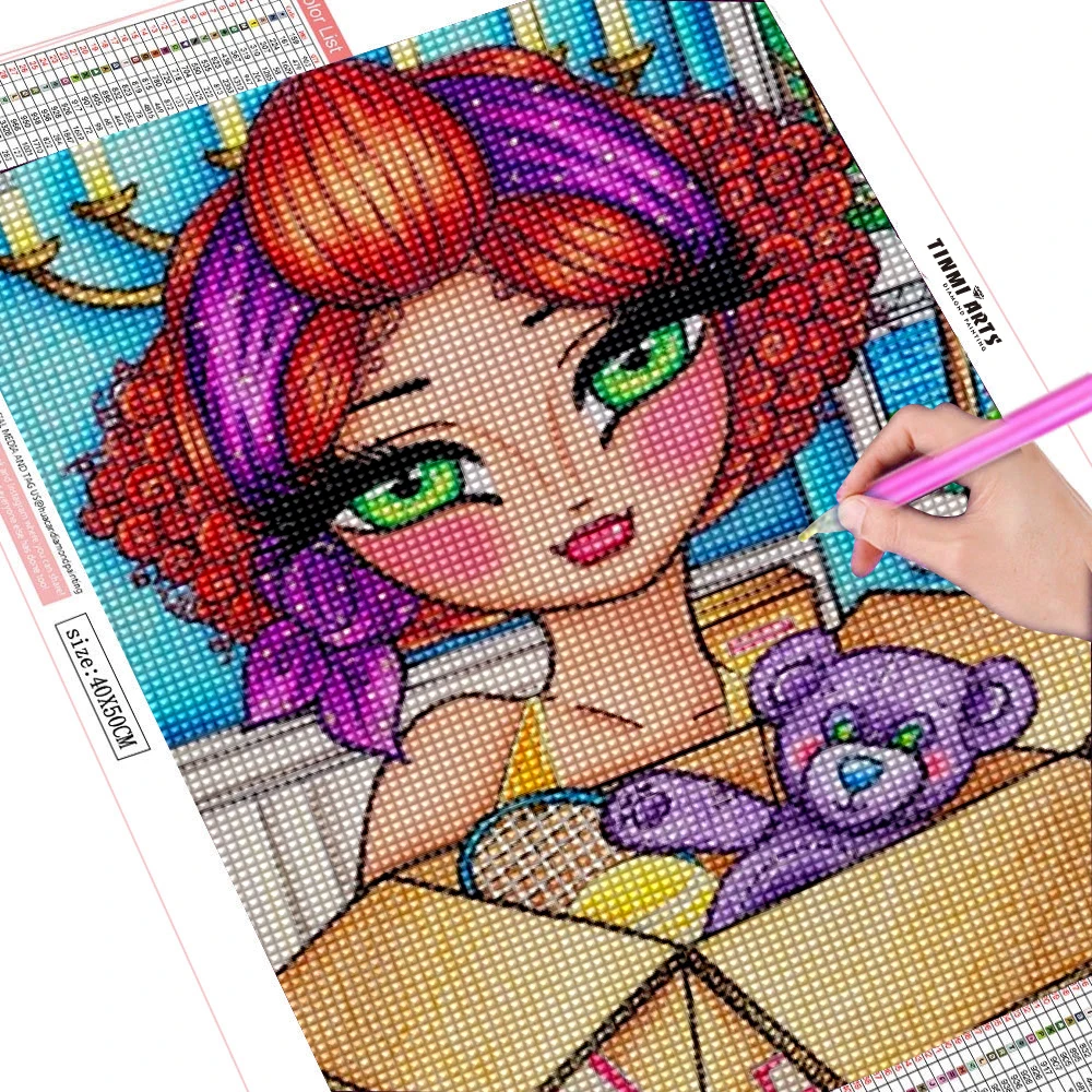 5D DIY наборы для алмазной живописи Full Round AB Drill мультяшная девушка, цветы, вышивка, мозаика, домашний декор