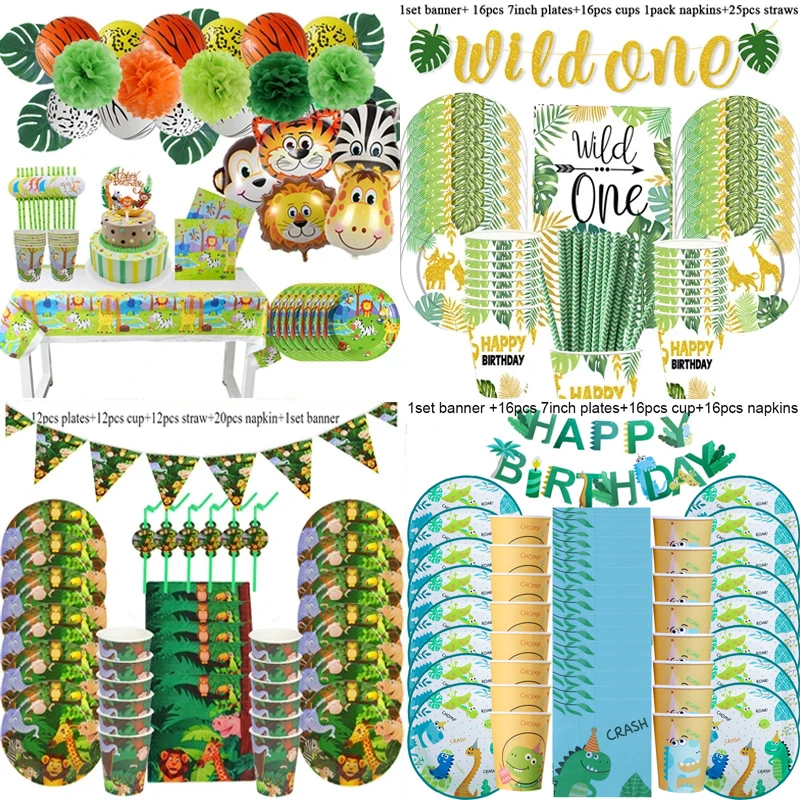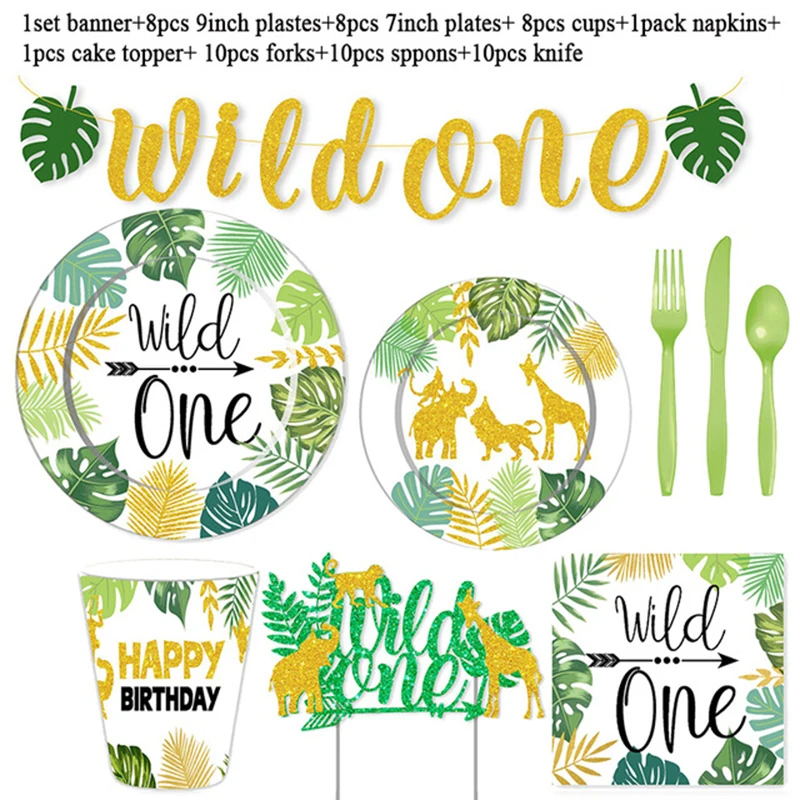 Набор одноразовой посуды для дня рождения для вечеринки в стиле сафари, джунгли, животные, динозавр, вечеринка, дикий один, 1-й день рождения, для мальчика, детский душ