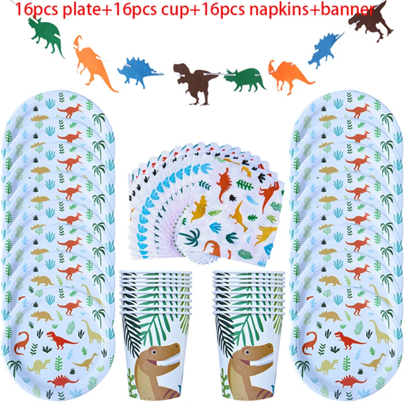 Набор одноразовой посуды в виде динозавра 49 шт., бумажные тарелки ...