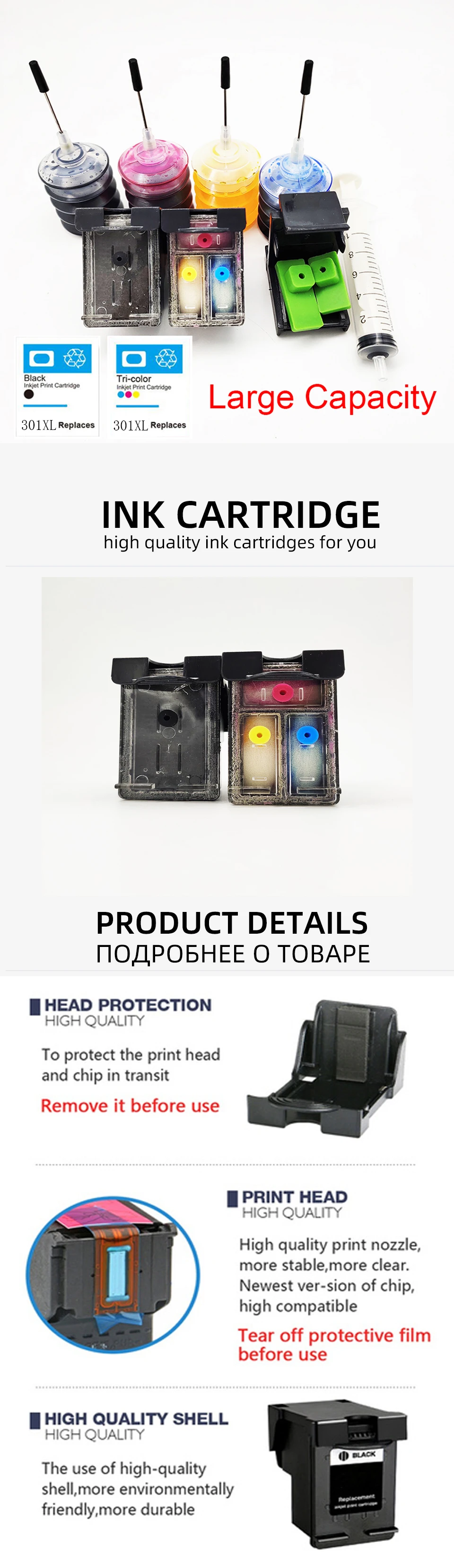 Подтвердите, что ваша модель принтера находится в описании списка (Ctrl + F), а ваша оригинальная или предыдущая модель чернильного картриджа-"301"Или"301 XL"; Если не 301 или 301xl, наш продукт не подходит для вашего принтера