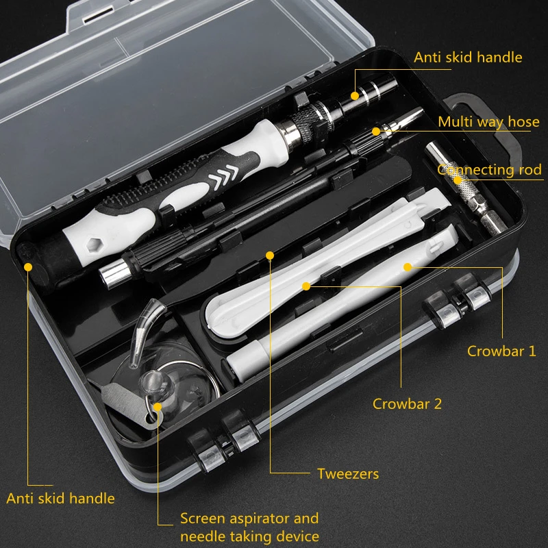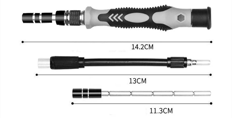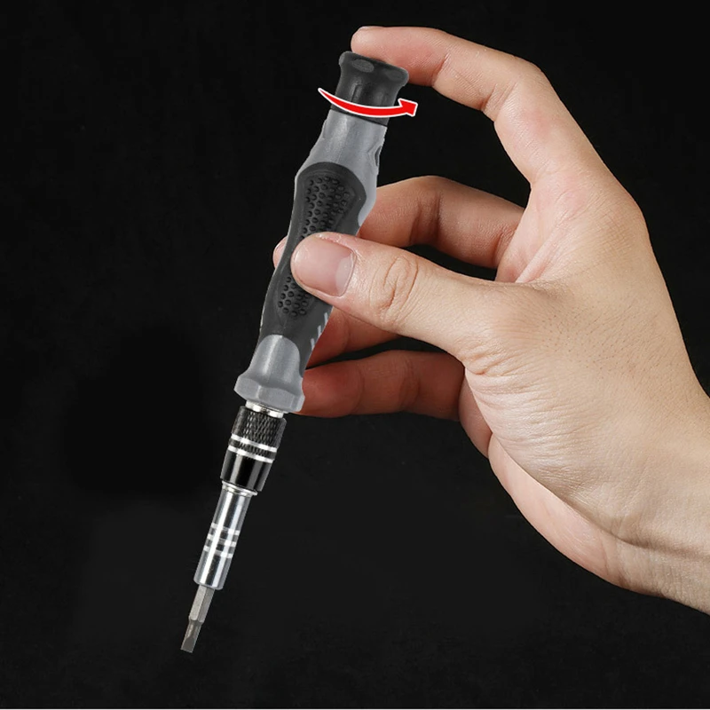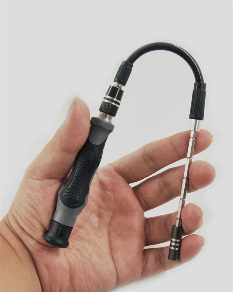 Характеристики: хром-ванадиевая сталь CR-V, нескользящая конструкция ручки, Магнитный Бит, быстрый и эффективный, полный набор инструментов для демонтажа, точная обработка, регулируемая длина