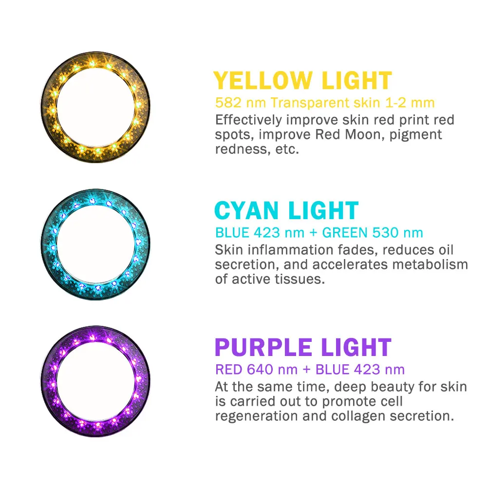 4. Зеленый светильник (490нм): проникающая кожа 1 мм. Увеличивает энергию клеток, способствует метаболизму и улучшает качество кожи