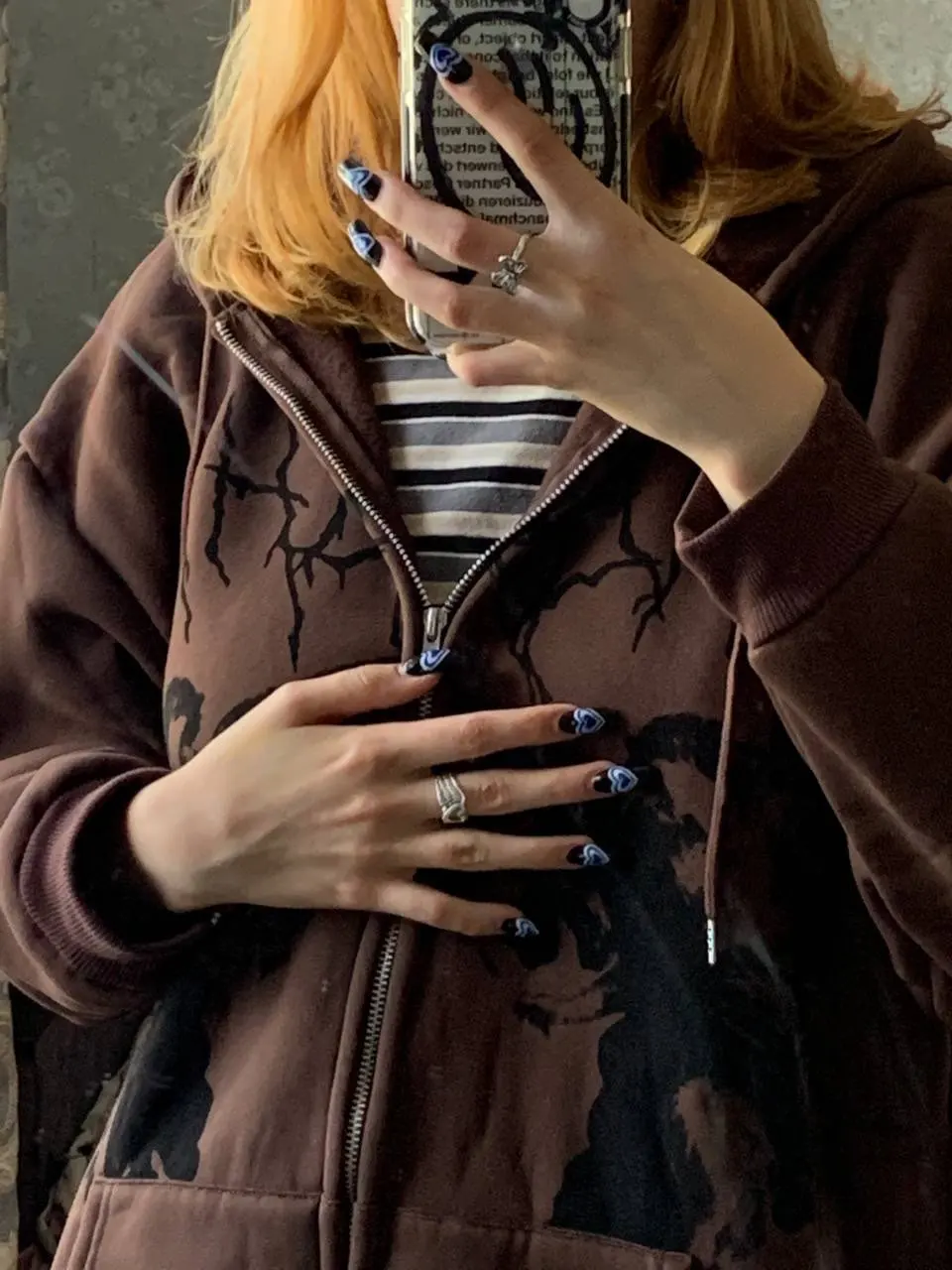Винтажная толстовка с капюшоном y2k, на молнии, в стиле эмо, для зи...