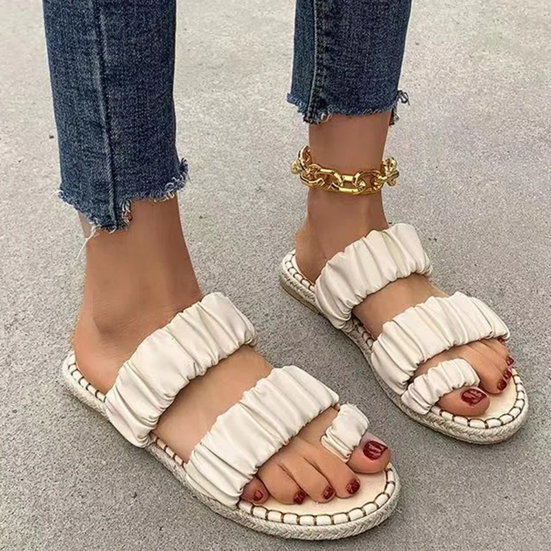 2021 г. Летняя женская обувь сандалии на плоской подошве Женская однотонная Белая обувь для женщин, пляжные шлепанцы без шнуровки Женская модная Уличная обувь