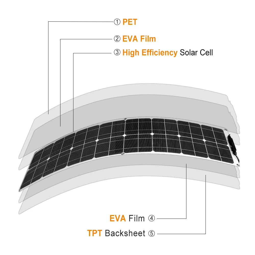 2*50 Вт (100 Вт) -12 В Полугибкие гибкие одиночные солнечные панели автофургонаДля автомобиля RV Морской Лодочный Прицеп