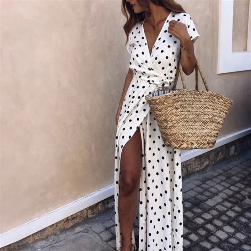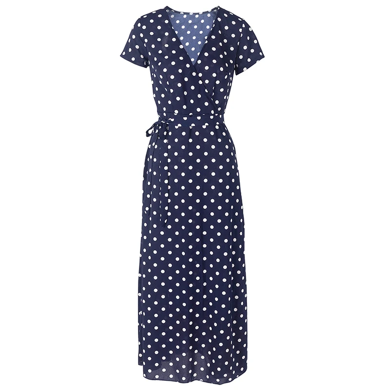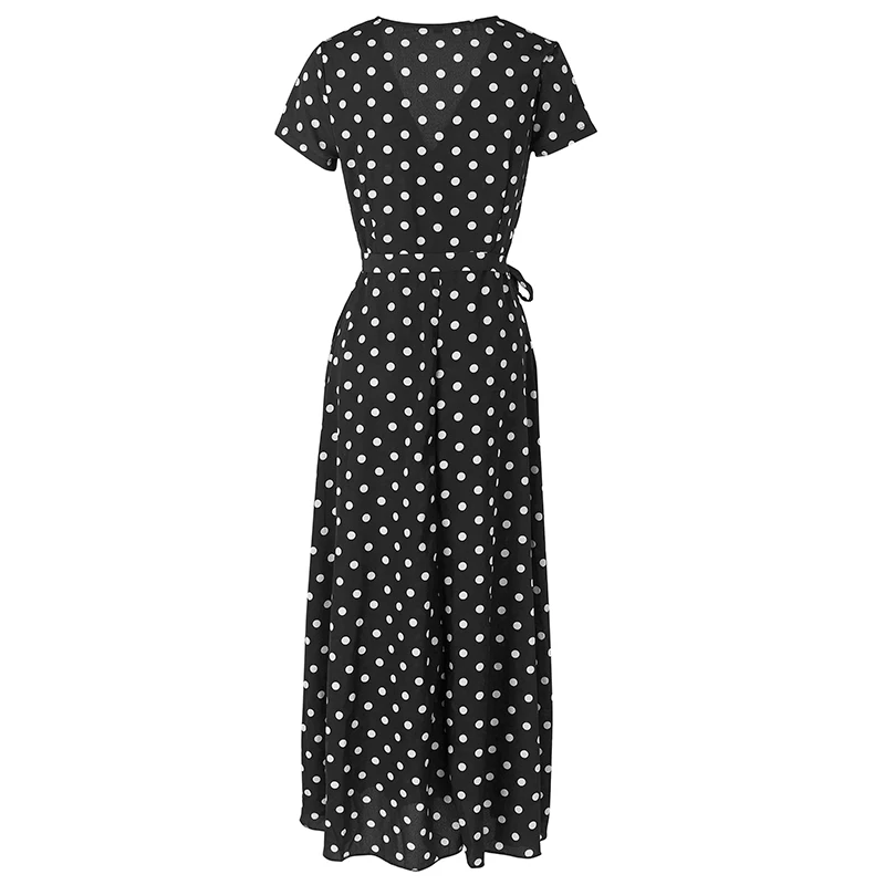 Женская летняя обувь в богемном стиле; Платье 2021 пикантные повседневные футболки с короткими рукавами и v-образной горловиной Макси Открытое платье без рукавов в винтажном стиле; С узором в горошек, вечерние платья