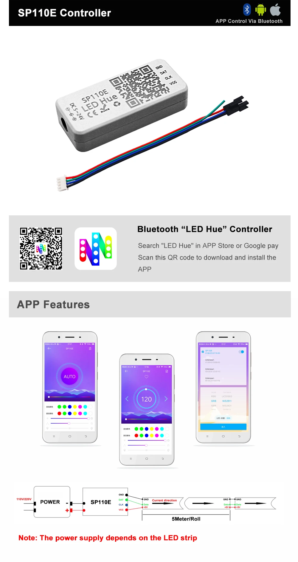1. Если вы выбираете только светодиодное кольцо, нет SP110E контроллера и USB провода
