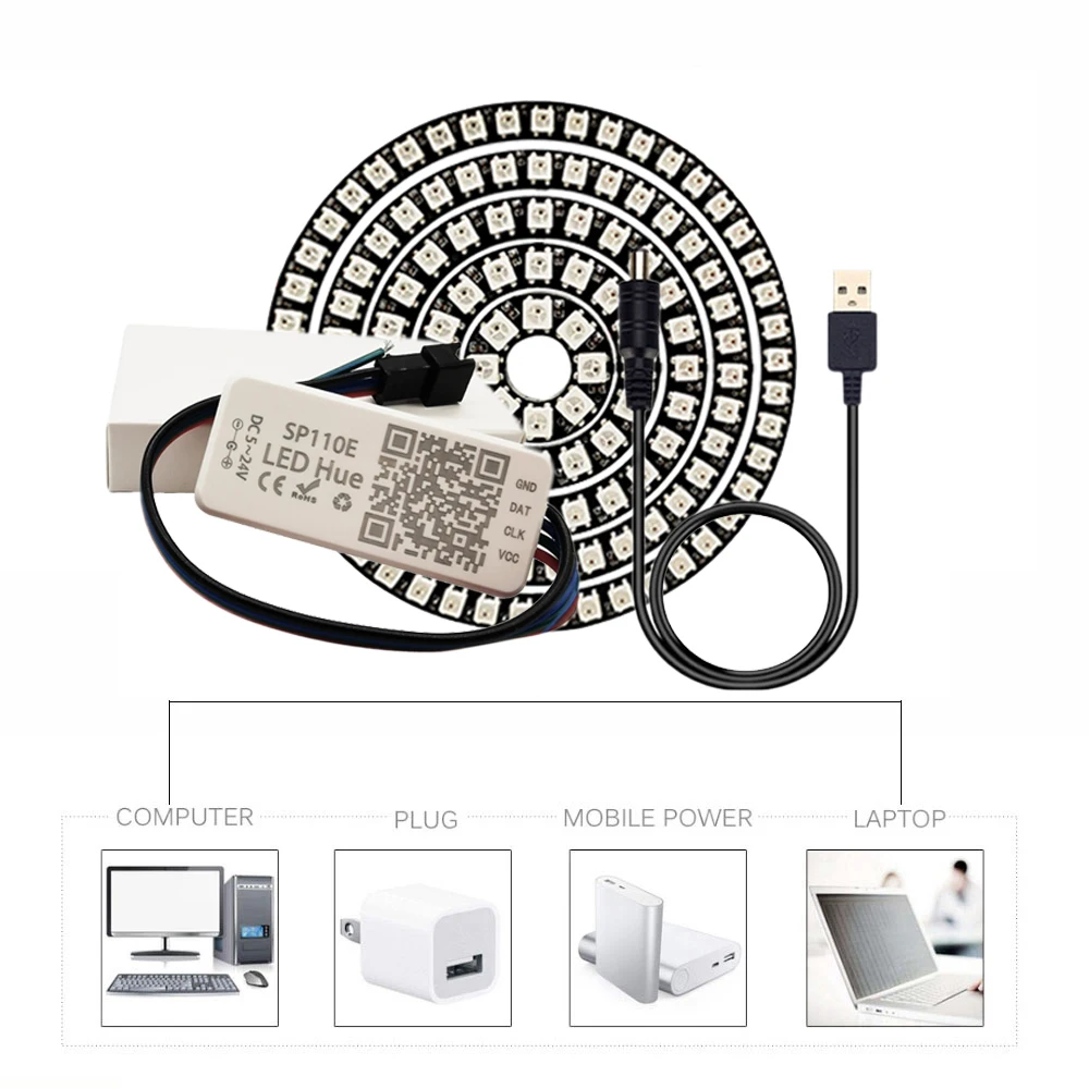 WS2812 СВЕТОДИОДНЫЙ Кольцо индивидуально адресуемых пикселей 5050 RGB WS2812B IC встроенный светодиодный модуль с SP110E Bluetooth контроллер USB DC5V