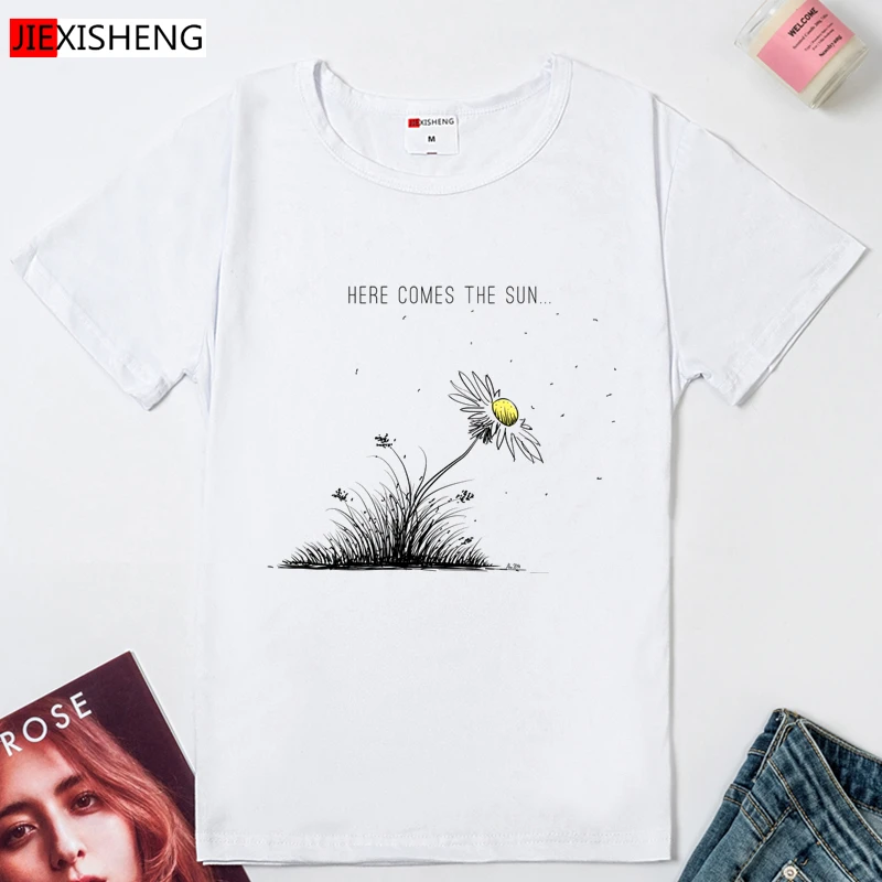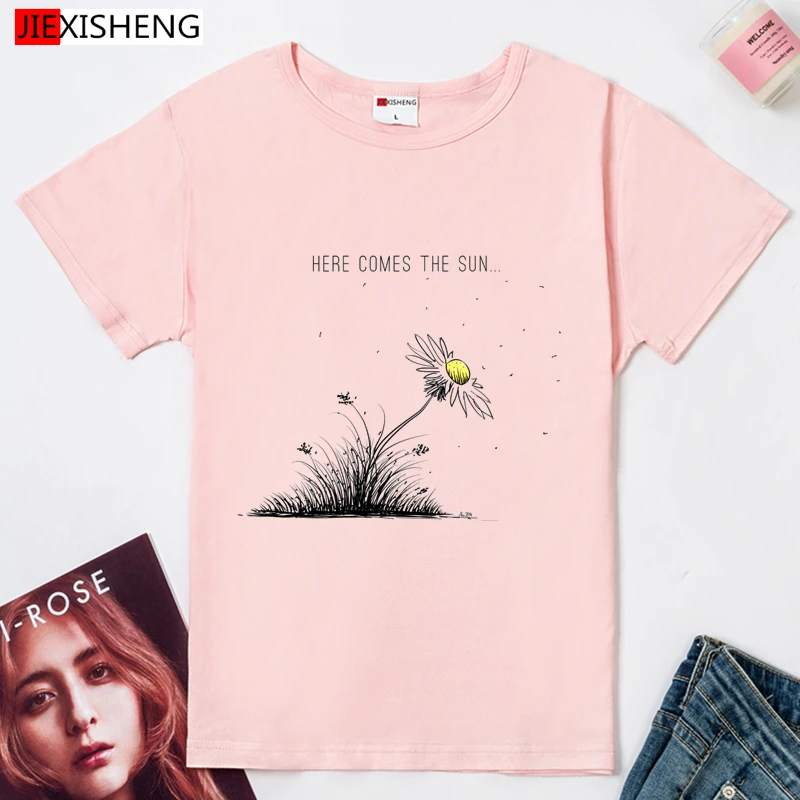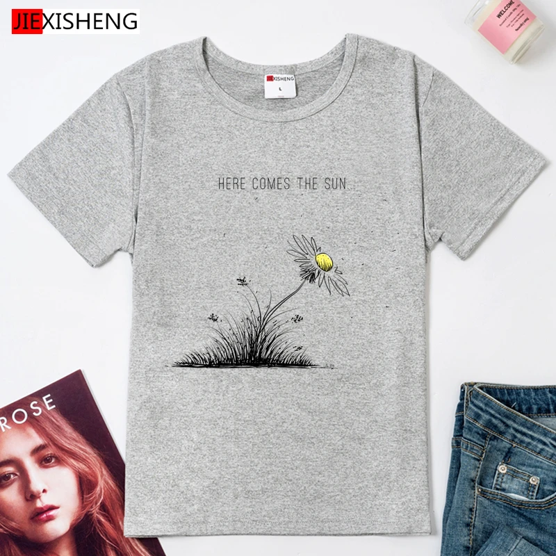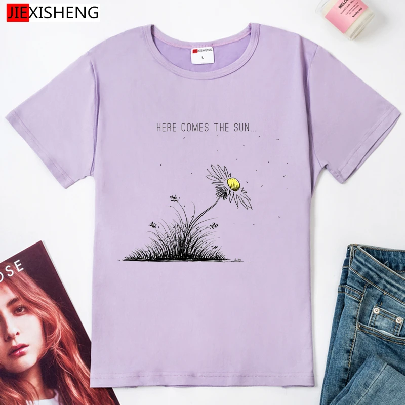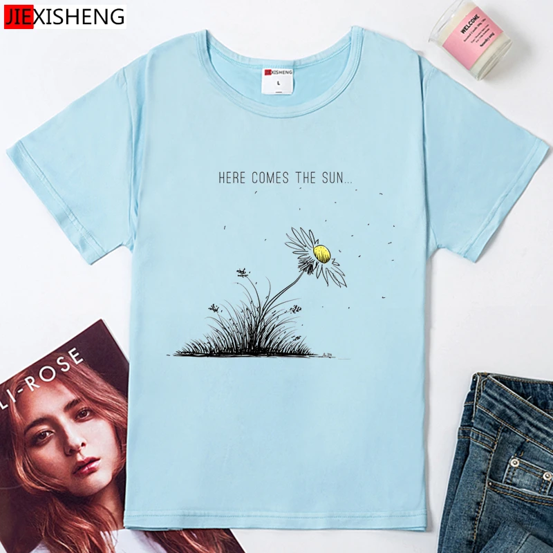 HERE COMES THE SUN Забавный принт Женская футболка лето Повседневные Безразмерные женские футболки 5 видов цветов футболка для девочек