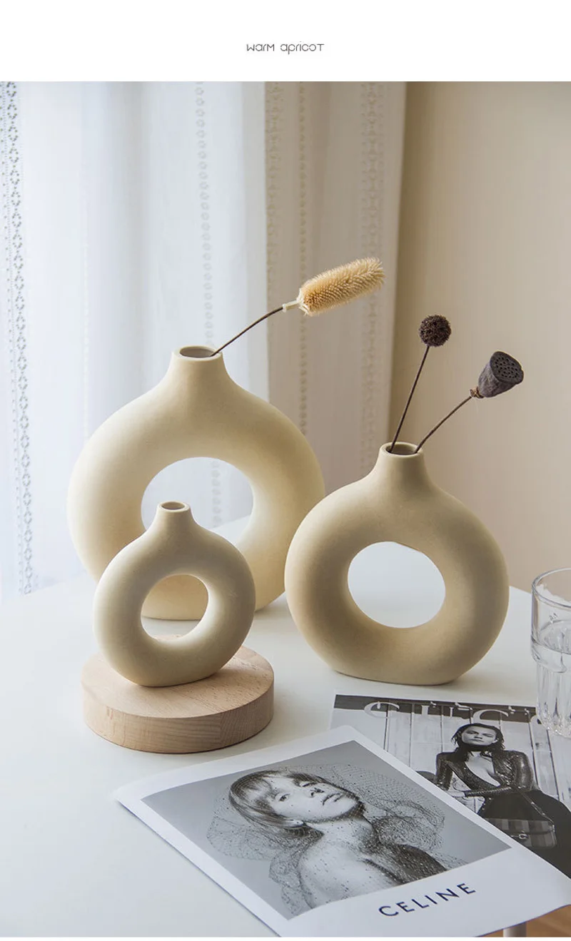 VILEAD, скандинавские пончики, керамическая ваза, круглый полый горшок для растений, домашний декор, сушеный цветок, художественный стол, офисная гостиная, украшение для рабочего стола