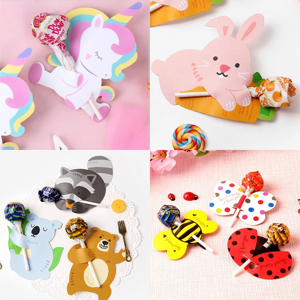 Декоративные открытки в виде единорога, пива, леденца, 50, шт.упак., Мультяшные животные, конфеты, леденцы с карточками, украшения для дня рождения, Детские сувениры