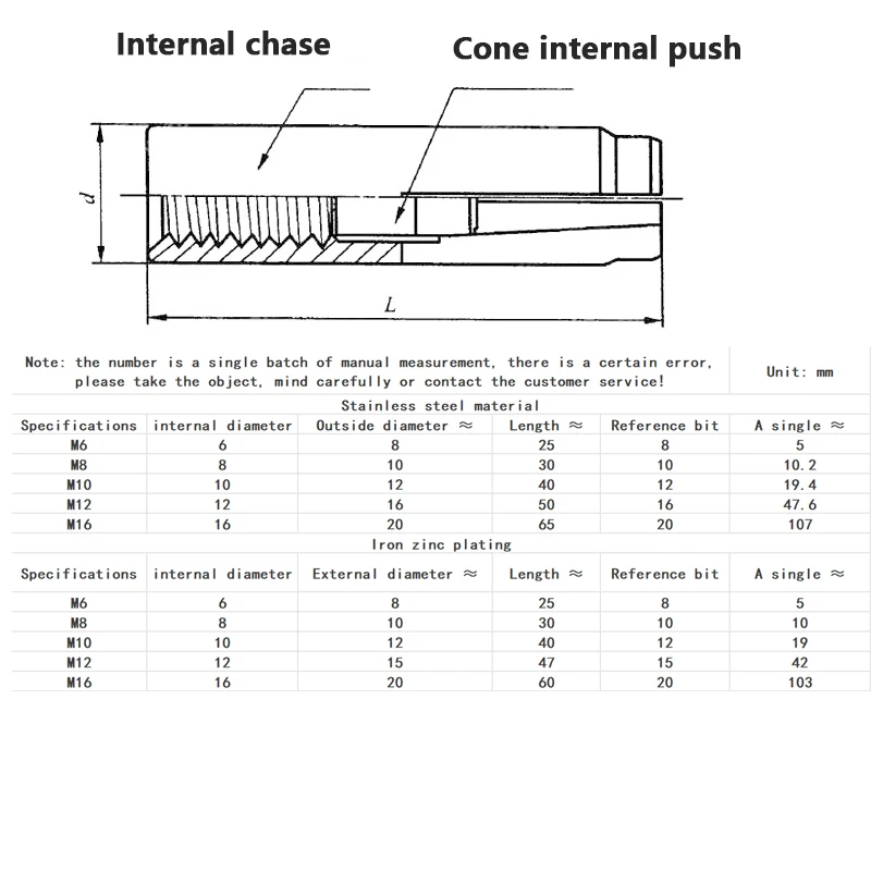 Обработка поверхности:Цинковое покрытие/необработкаФорма размера: M6 * 8*25 (внутренний диаметр 6 мм x Внешний диаметр 8 мм x длина 25 мм)