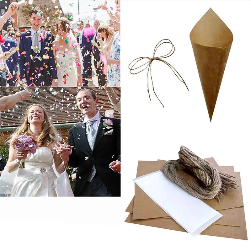 100 шт. креативных ретро-бумажных цилиндрических конусов из крафт-бумаги с конфетти для украшения свадебной вечеринки бумажные конусы для свадьбы с конфетти