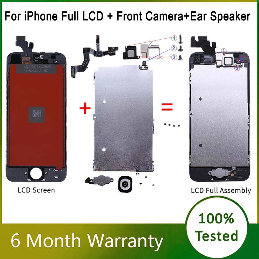 ЖК-дисплей для iPhone 5, SE, 5C, 6, 6P, 6S plus, 7plus, 8plus, полный экран, фронтальная камера, динамик для наушников, 100% протестированный
