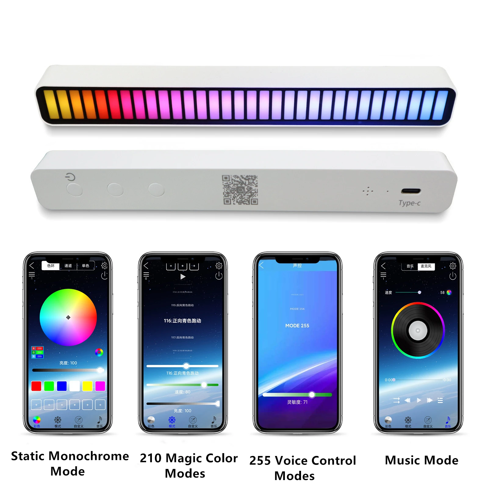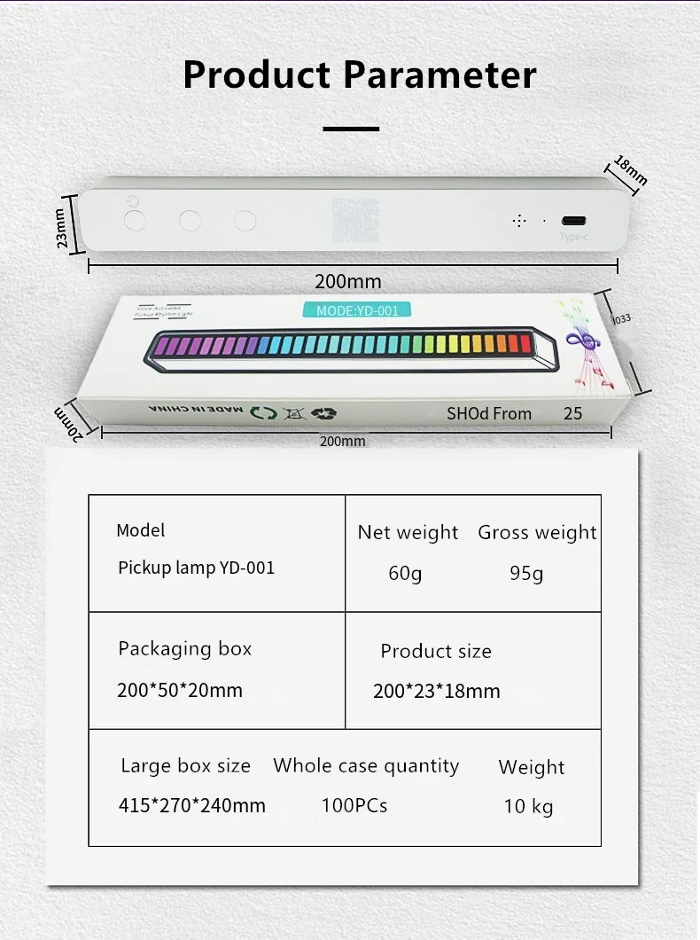 4. Тип обновления: индукция звукового поля, источник питания USB (Type _ C), может фильтровать шум окружающей среды, мобильный телефон, управление приложением: 7 статических режимов, 5 динамических режимов, 10 режимов захвата.Характеристики:Напряжение: 5 В/1 а постоянного токаВстроенный аккумулятор 300 мА/или с питанием от USB