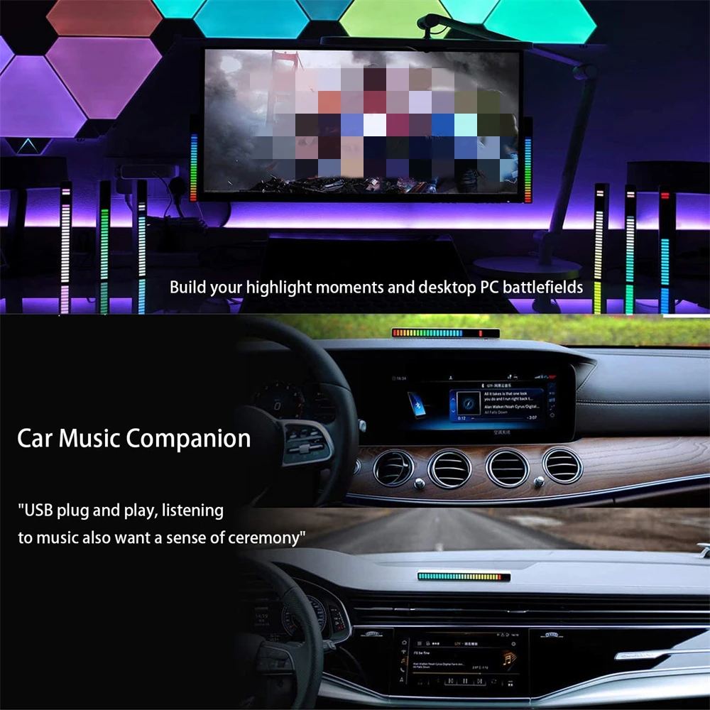 Автомобильная RGB музыкальная звуковая панель со светодиодным уровнем освесветильник, новинка, Ритмическая лампа, настольная Настройка ПК, подсветка, освещение для автомобиля, атмосферсветильник
