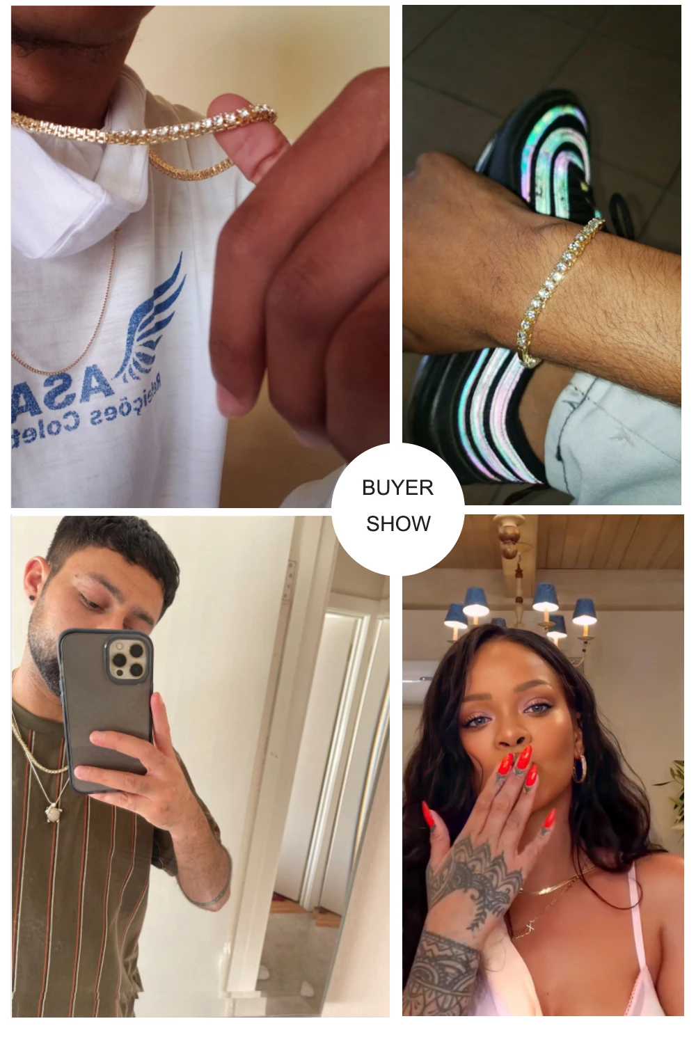 Дорогой друг, у нас есть Заводские продукты для нас, мы можем сделать все, что вы хотите, поэтому если у вас есть какие-либо вопросы, пожалуйста, свяжитесь с нами. Описание Стиль: 1 ряд теннисных цепей ожерелье Размер: 4 мм (ширина) Длина браслета: 8 дюймов Длина ожерелья: 18 дюймов, 20 дюймов, 22 дюйма, 24 дюйма, 30 дюймов Вес: 68 г (20 дюймов),80 г (24 дюйма),100 г (30 дюймов) Материал: цинковый сплав с AAA стразы Характеристика: Сохранить блестящий навсегда:Каждый кубический цирконий-это отобранный вручную качество 5A, который полностью чистый и прозрачный, похожий на сверкающий с настоящими алмазами. Мы используем золотое покрытие 0,3мкм в течение 5 раз, поэтому оно не поворачивается Ваша кожа зеленого цвета и не выцветает в течение 3-5 лет. Он может гарантировать, что каждая теннисная цепь отражает большой светильник, чтобы создать этот блестящий эффект Предотвращение падения:Мы используем латунь в качестве основного материала, который может сделать зубчатую установку как настоящее золото и алмаз. Все наши теннисные цепи используют зубчатую установку, а не клею. Таким образом, вы можете видеть, что алмазы инкрустированы в теннисе Цепи аккуратно расположены. Зубец делает продукты более блестящими и гарантирует отсутствие падения камня Твердый и гибкий:Проверьте застежку, чтобы убедиться, что она надежно закрывается и не открывается легко. Он должен быть сильным и не легко сгибаться или ломаться. Это позволит вам носить Ваше ожерелье с цепочкой для тенниса более часто Не бойтесь, что его части быстро изнашиваются. Рейтинг топ в этой хип-хоп ювелирной игре Удовлетворить все ваши потребности:Он предоставляет вам этот фантастический набор из теннисной цепочки, чтобы полностью удовлетворить ваши требования. Этот безупречный комплект для тенниса отличается искусным мастерством и красивым цветом, подарит вам ощущениеЭлегантности и деликатности. Наш размер включает: 16 '',18", 20 ", 24"