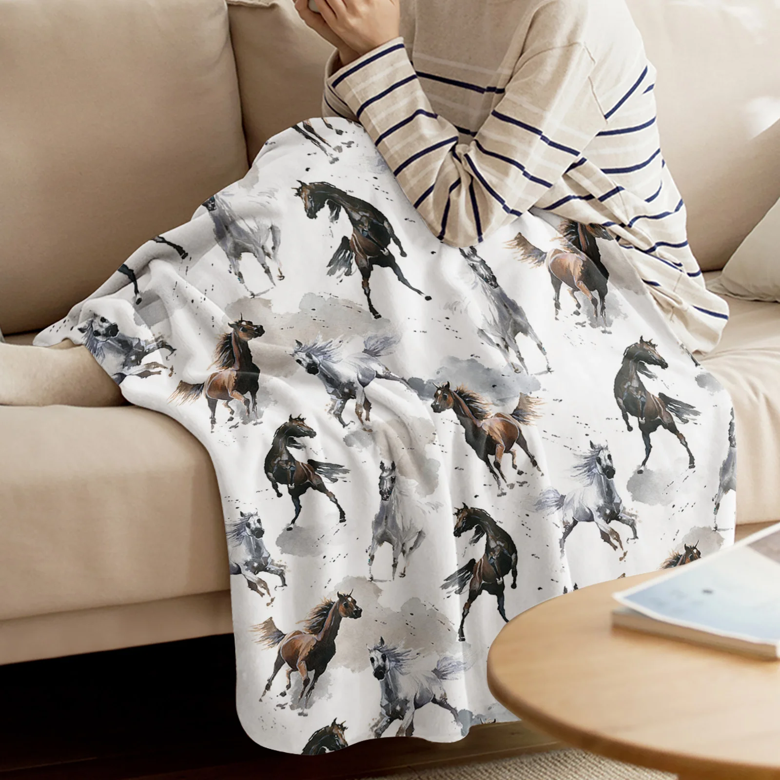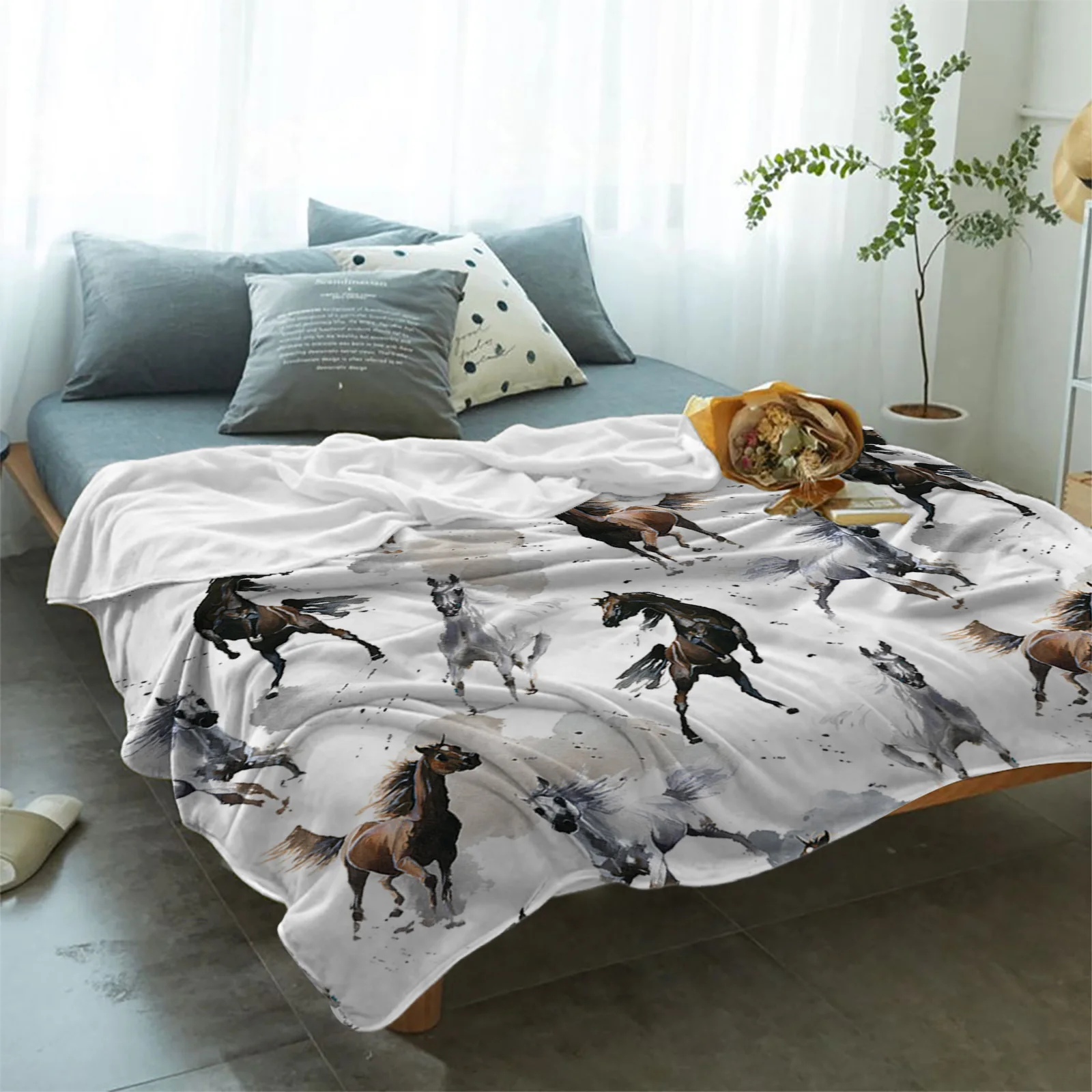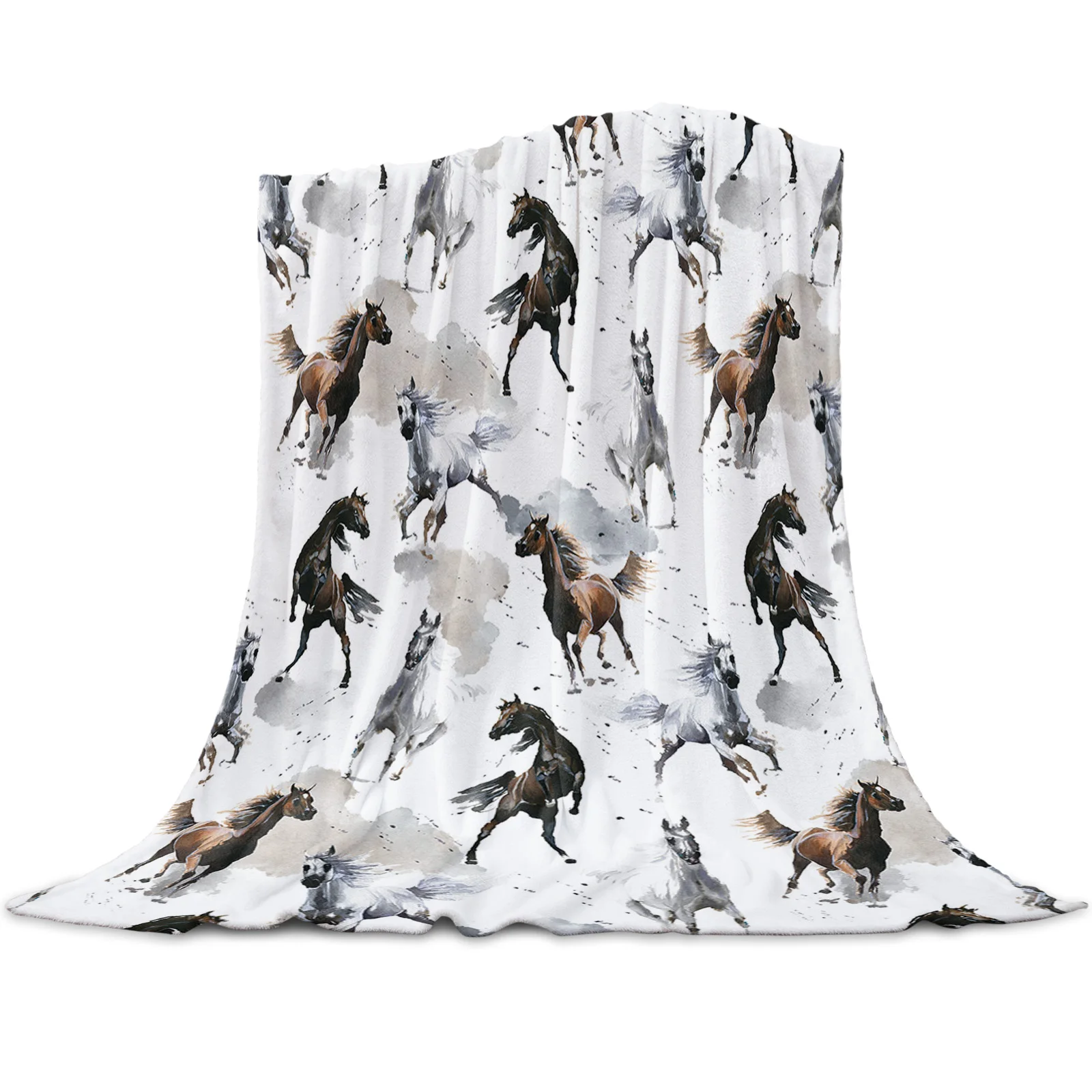 Акварельный китайский стиль лошадь фланелевое одеяло для дивана покрывало из Микрофибры Покрывало покрывало для кровати