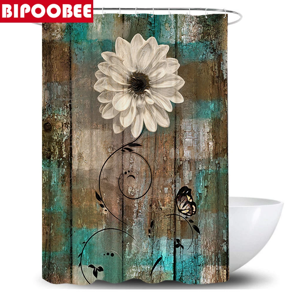 Занавеска для душа с красивым цветочным узором, водонепроницаемая т...
