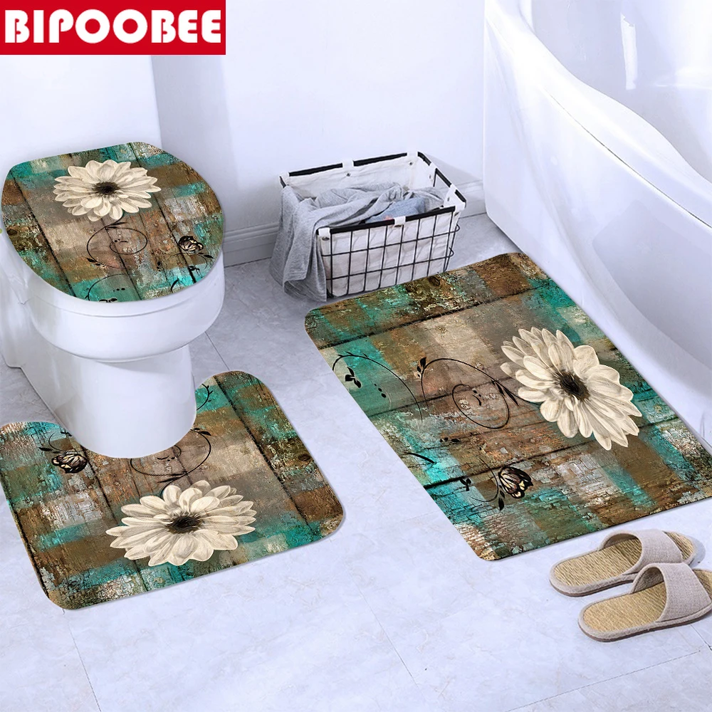 Коврик для ванной комнаты с цветочным принтом, водонепроницаемый ко...