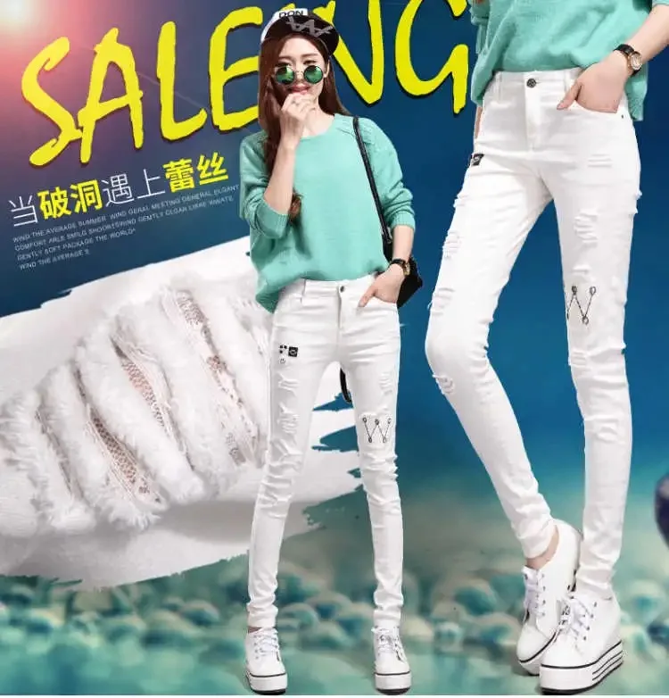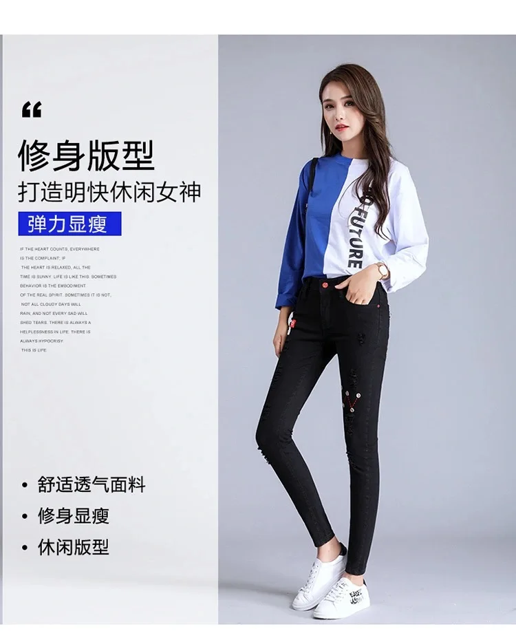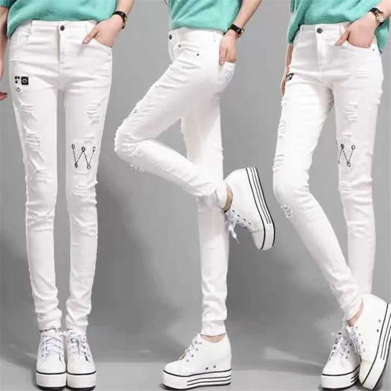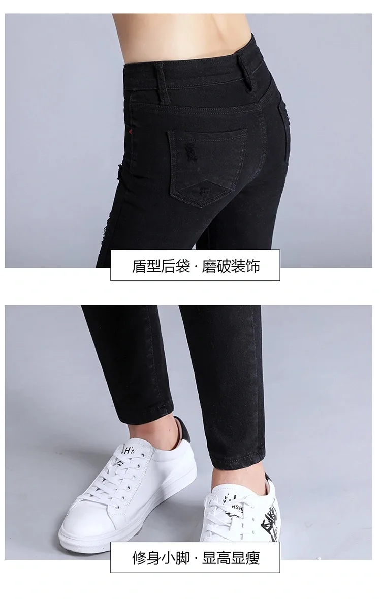 2019 Модные женские повседневные рваные обтягивающие брюки-карандаш...