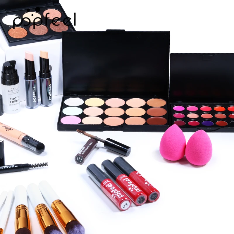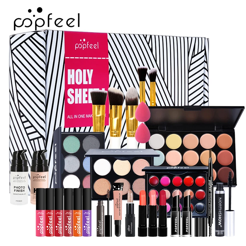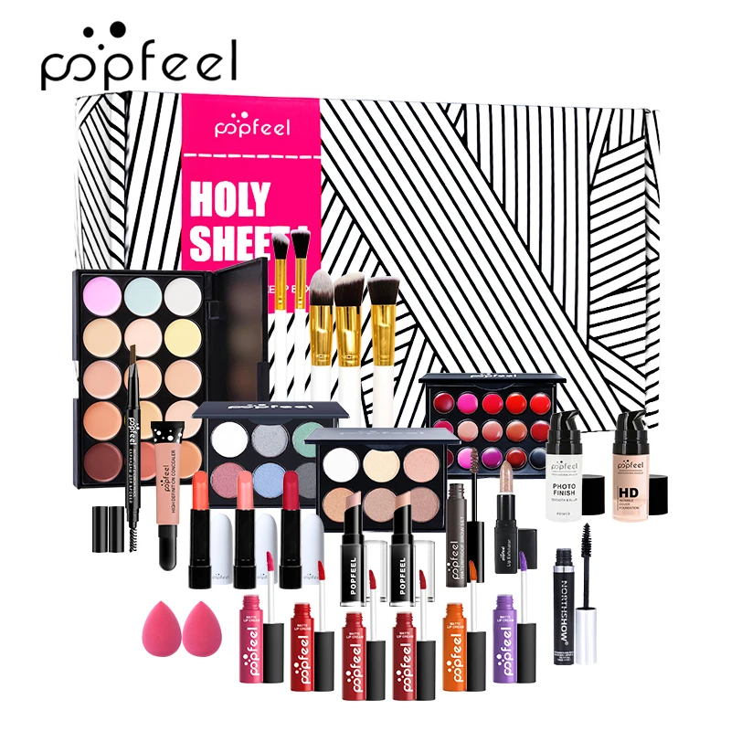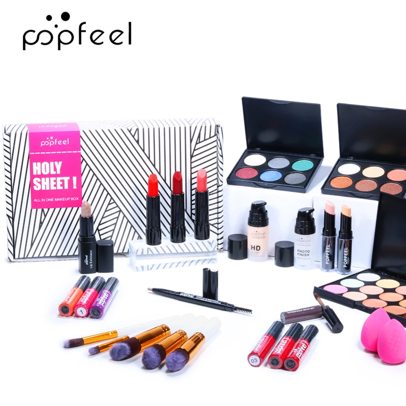 POPFEEL 30 шт. набор для макияжа Тени для век помада для бровей Тушь для ресниц Кисть для макияжа пудра с сумкой для макияжа Полный стартовый набор для макияжа