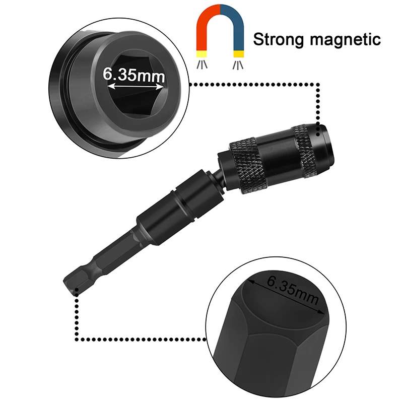 Черный ударный жесткий держатель для наконечников, Магнитный поворотный держатель для наконечников, 20 градусов, быстросменный Винтовой Адаптер для наконечников сверла