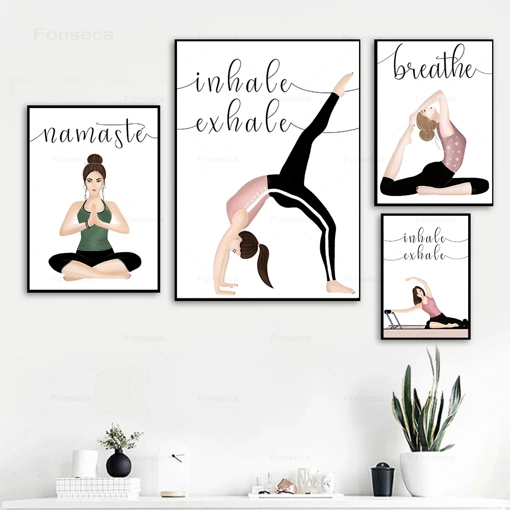 Выдохнуть Цитата Йога плакат на холсте художественные принты настаст настенный художественный Декор для девочек фитнес подарки зал художественная живопись Декор
