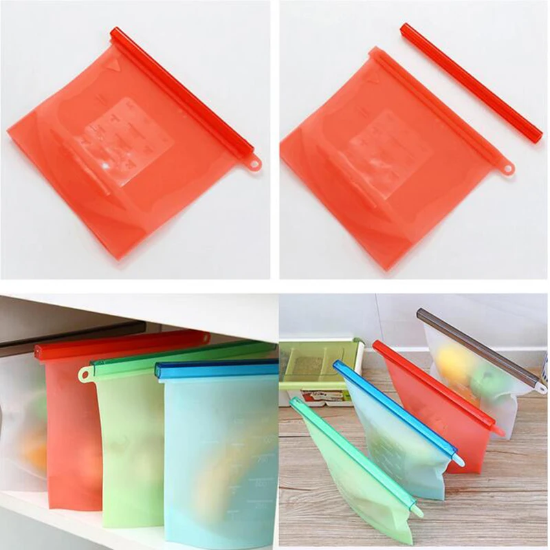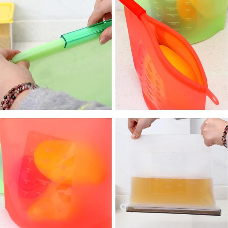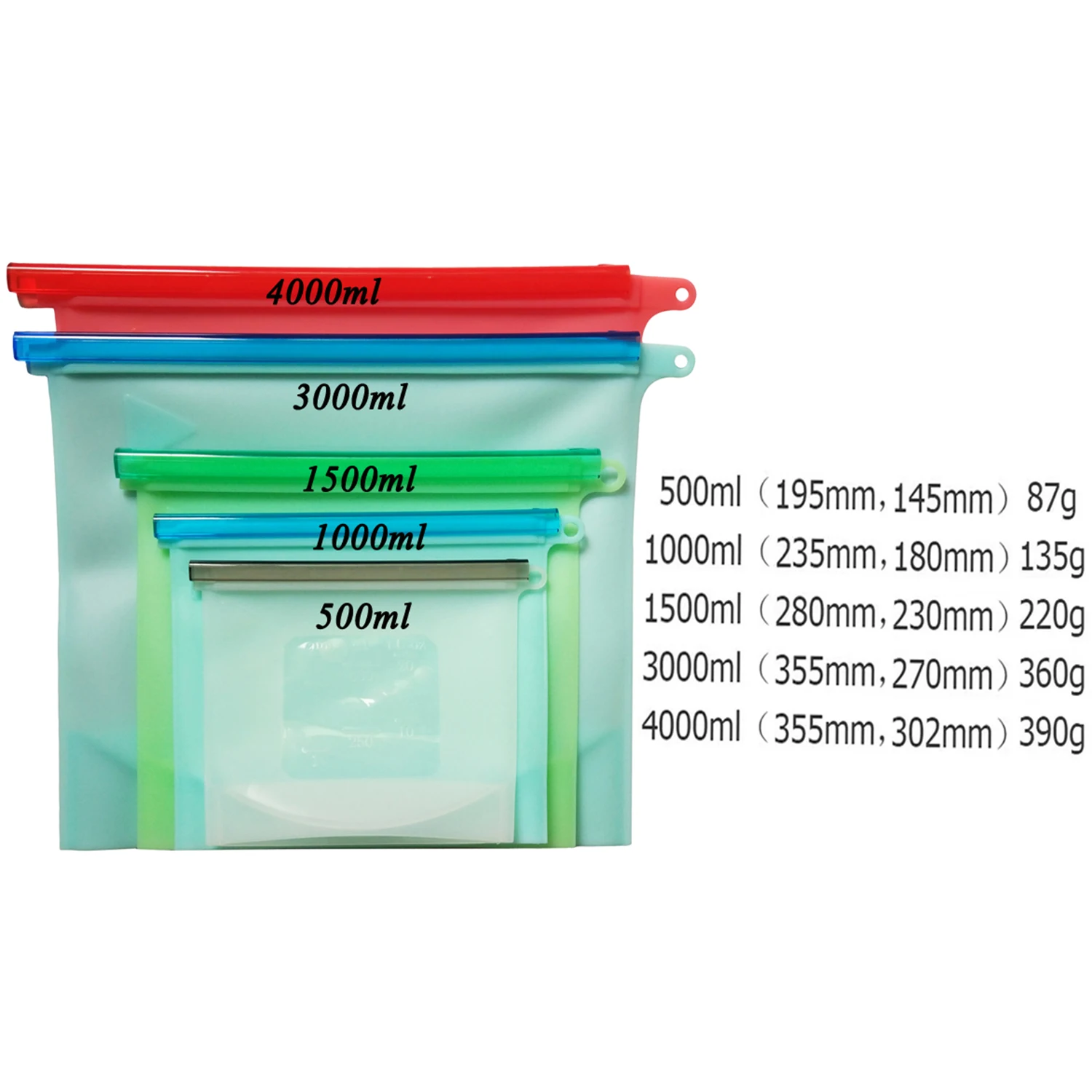 1500 мл силиконовый многоразовый пакет, пакеты для хранения пищевых продуктов, 4 упаковки для замораживания контейнеров