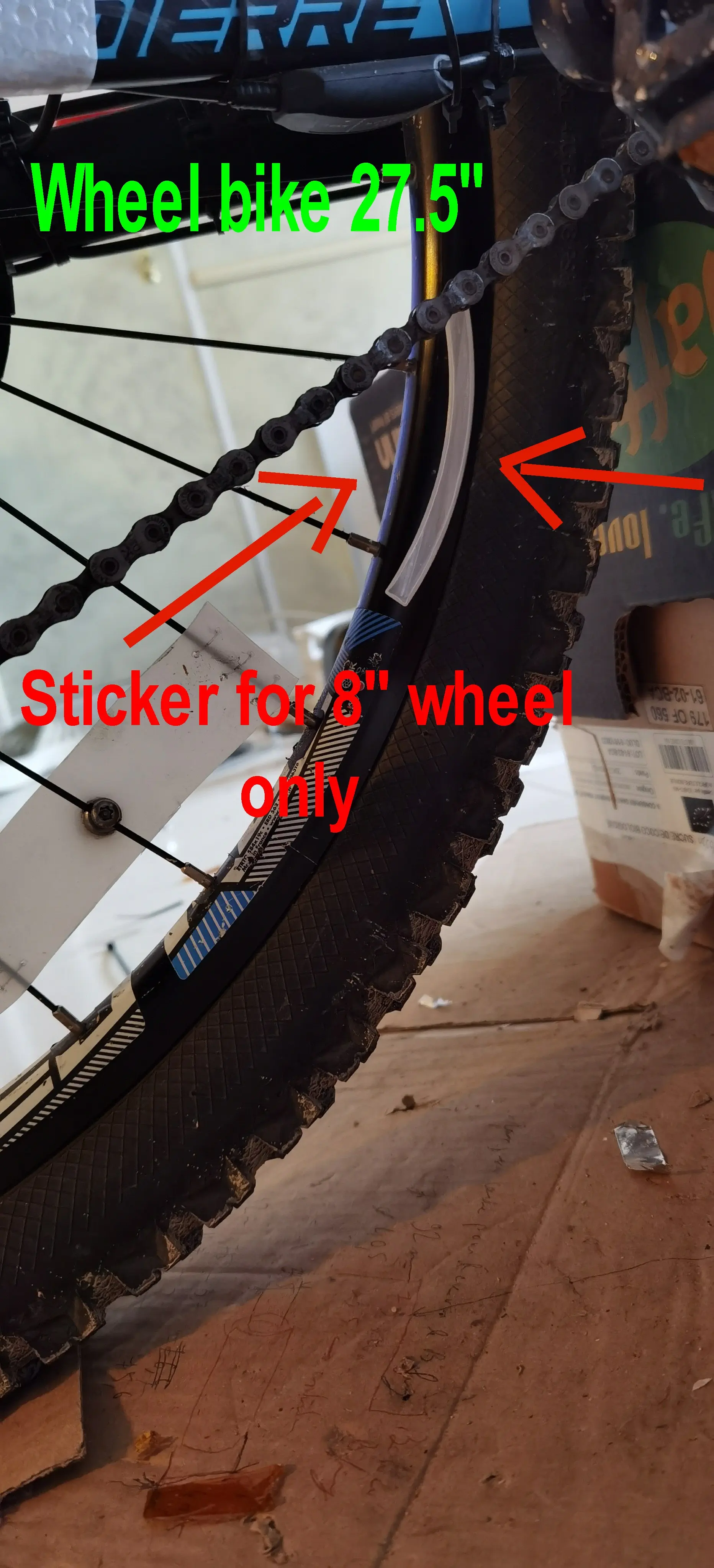 Hi, the advertisement has false informations. the ad pictures is fake. the title "Bike Reflector Tape Strip for Car Bicycle Motorcycle Scooter" is wrong. I used the stickers on the 27.5 "(69.85 cm) wheel bike. It doesn't work. see picture on my bike. the sticker corresponds to the small wheel of approximately 8 "(20cm) diameter...too small for bike, car wheel. the pictures of the advertisement, the sticker on the wheels. the title is wrong for the wheels: Bike: fake Car: fake Bicycle: fake Motorcycle: fake Scooter: only toy's The sticker matches the wheels of kid's toy or Scooter toy's.
