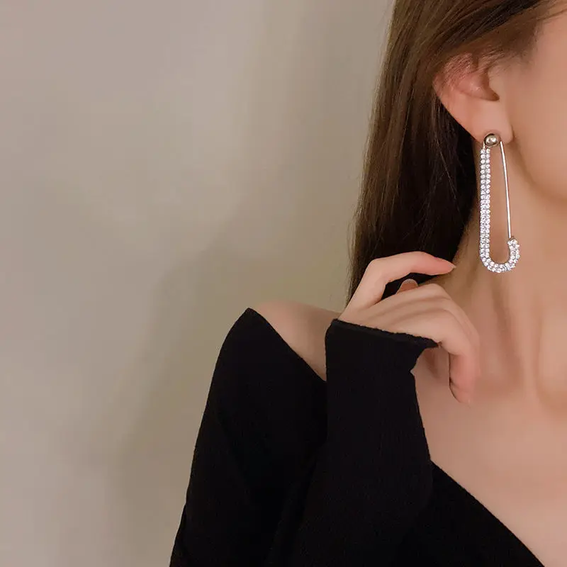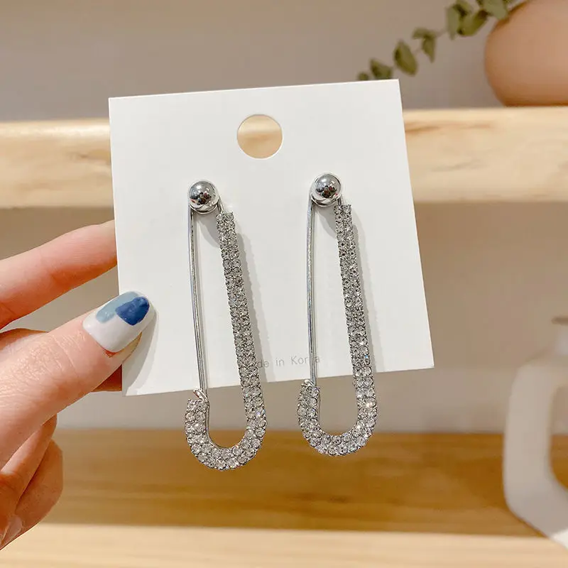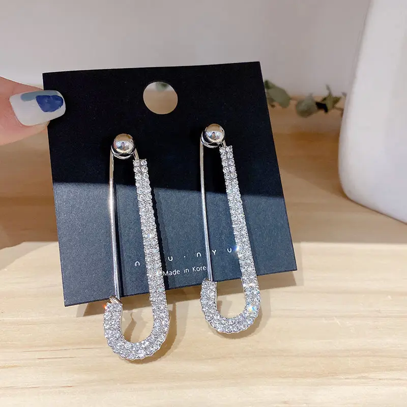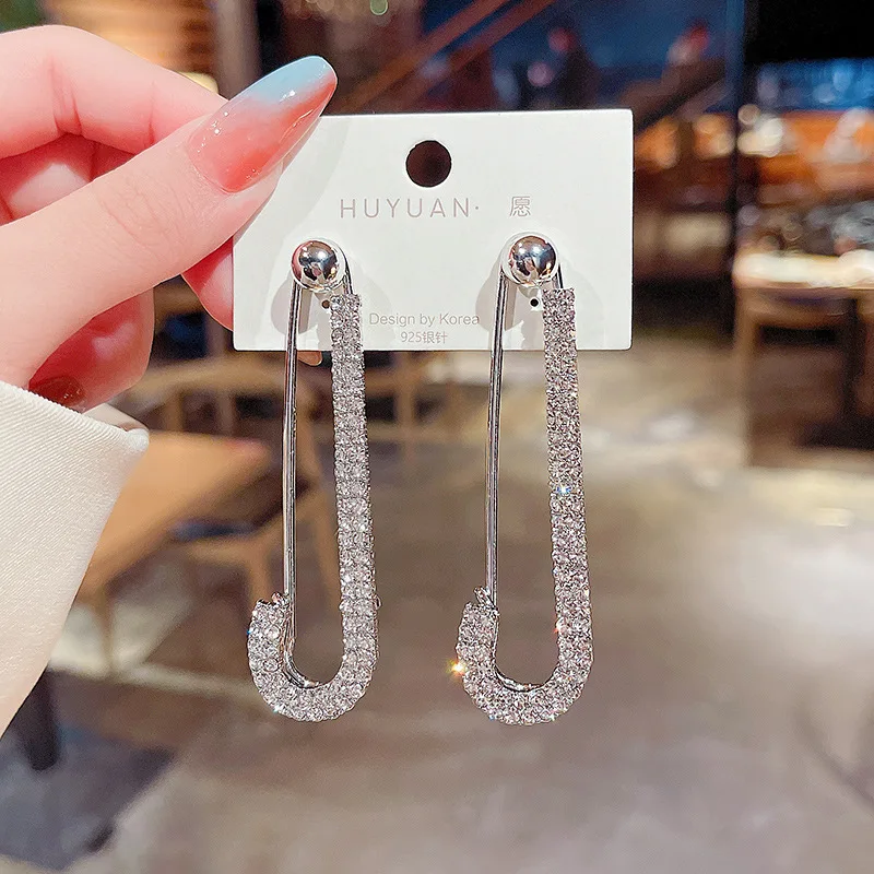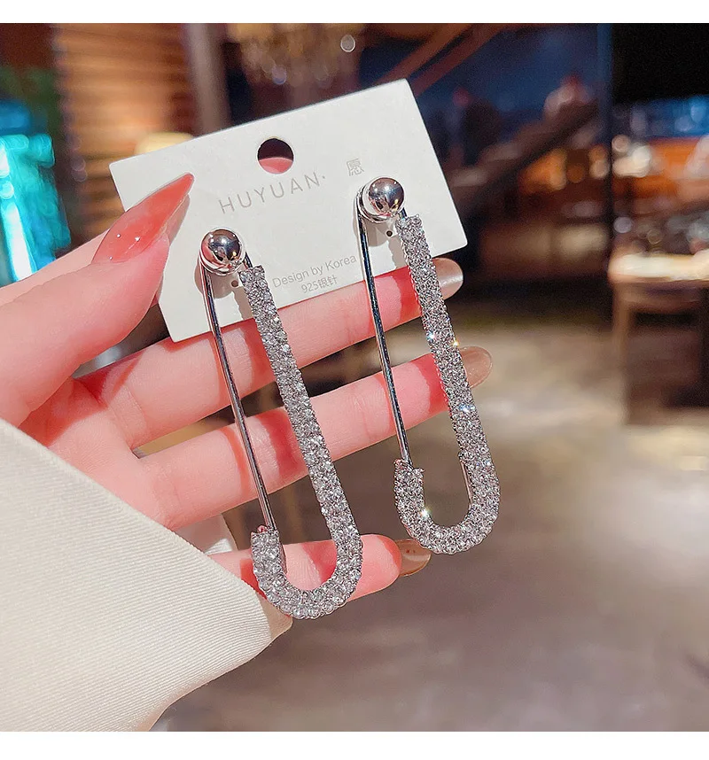 Женские серьги с булавкой, модные геометрические серьги с бриллиант...