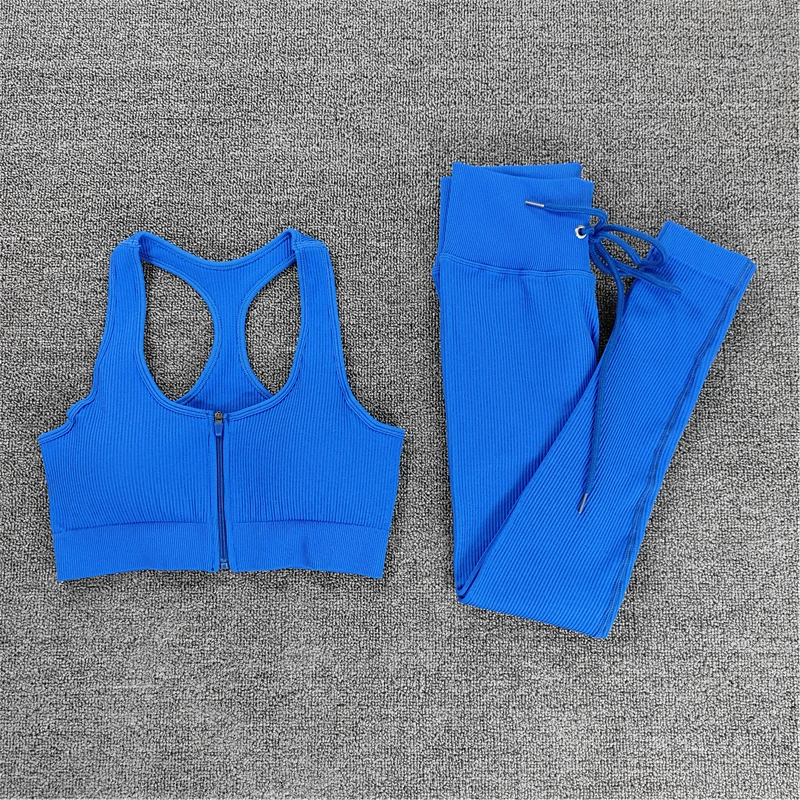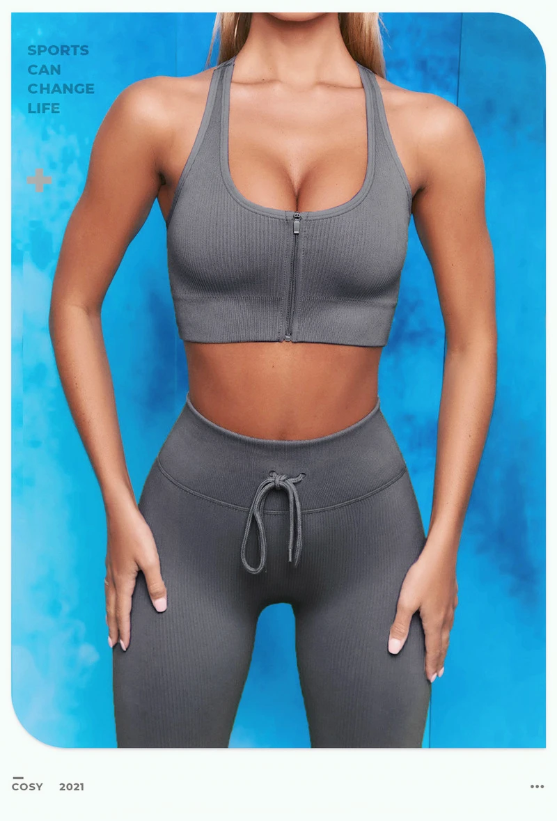 Женский спортивный костюм из 2 предметов, бесшовный Укороченный бюстгальтер на молнии, леггинсы с высокой талией, комплект для йоги, спортивный костюм, тренировочный костюм, одежда для фитнеса и спортзала