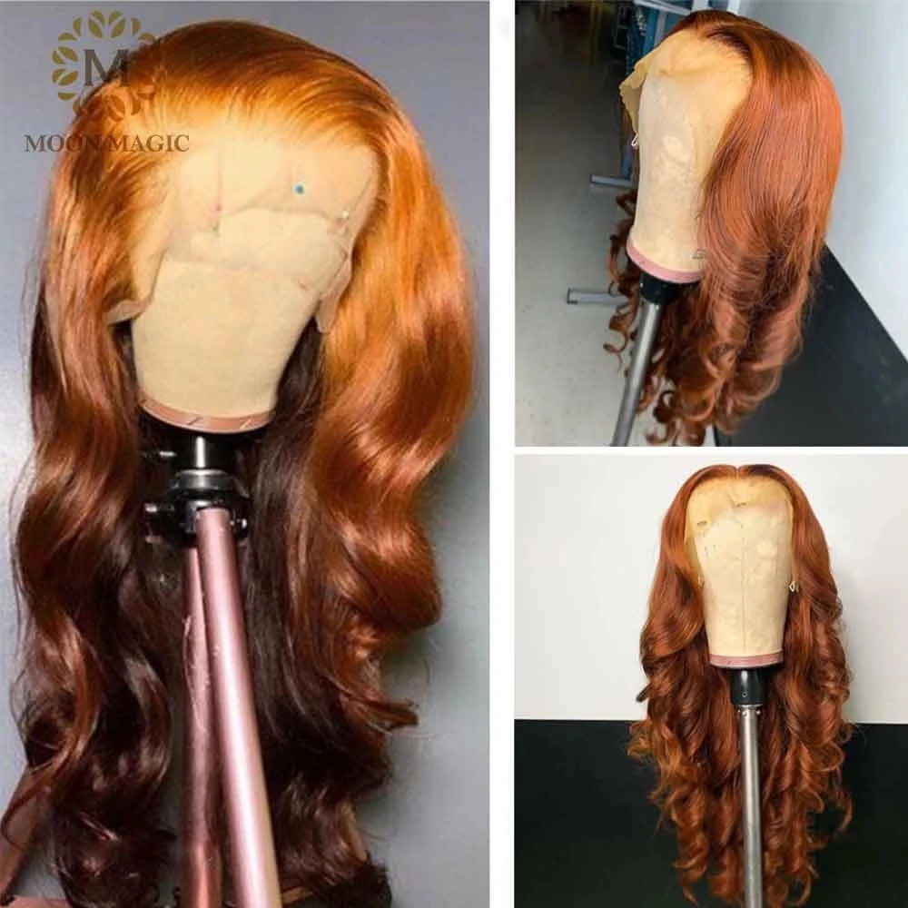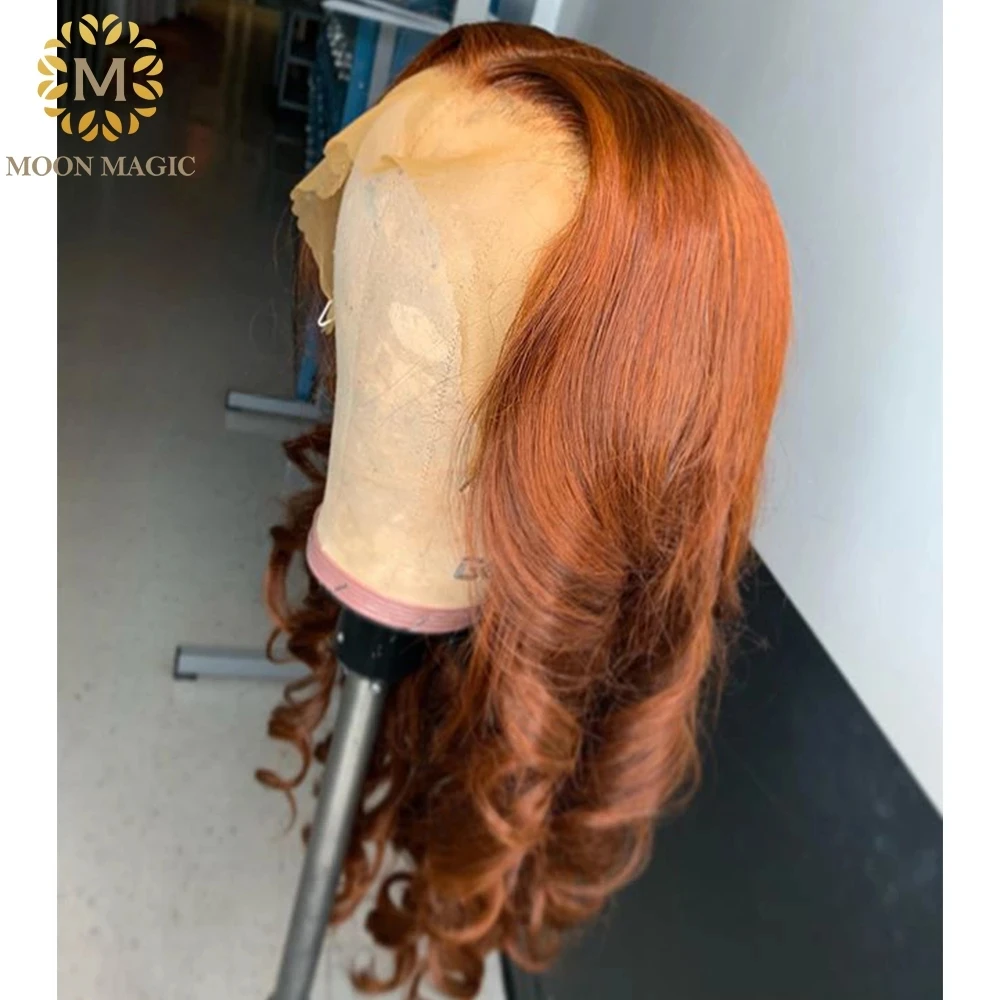 13x6 синтетические волосы на кружеве парик имбирь оранжево-Цветной человеческие волосы парики для женщин из натуральных волос на кружевной основе Кружева передние парики для волос Выбеленные узлы