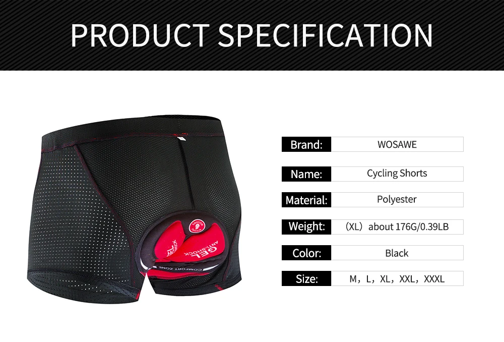 WOSAWE Мужские велосипедные шорты 5D гелевые подушечки Велосипедное...
